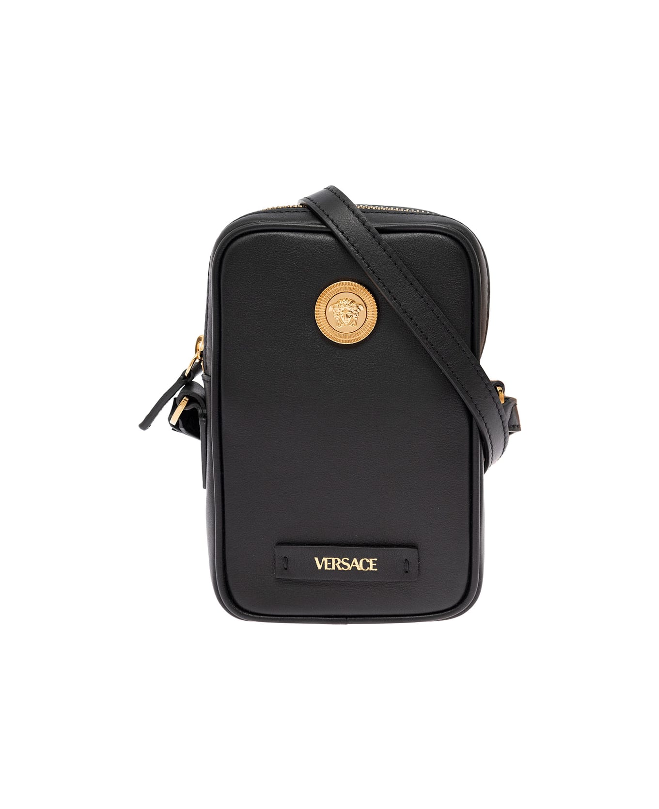 Versace Man's Black Leather Smartphone Case With Metal Logo