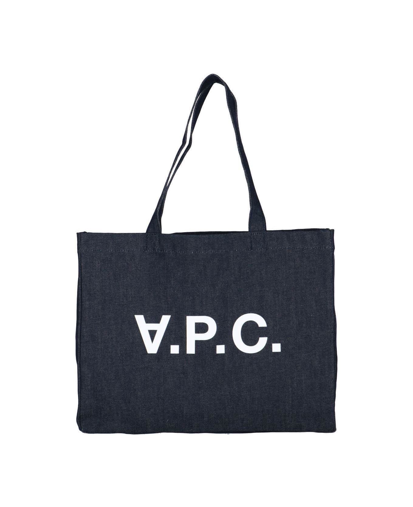 A. P. C. 'Daniela' Tote Bag, cotton blend, blue, double handle, front print, main internal compartment.