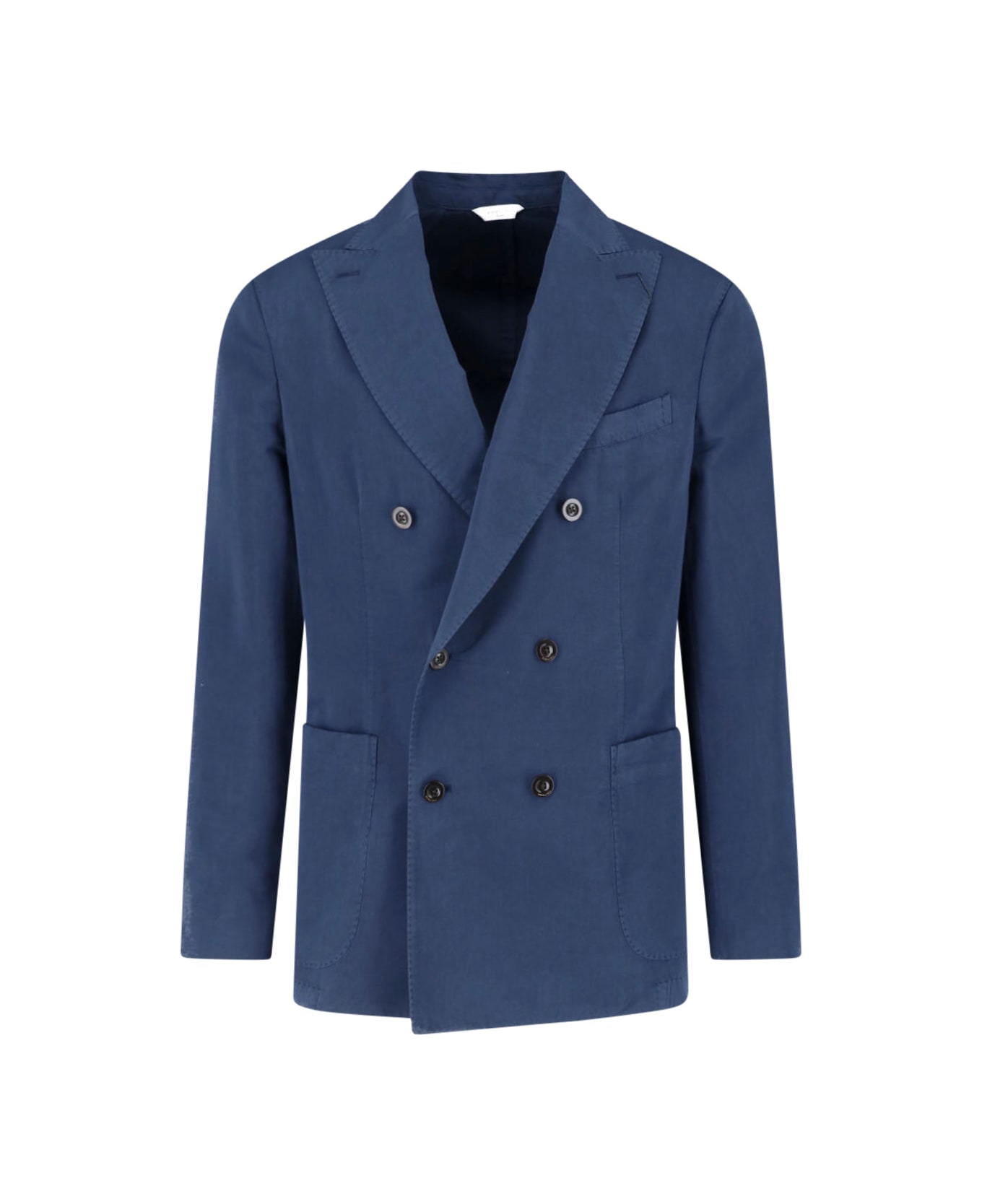 - Double-breasted blazer in blue cotton and silk Boglioli - Notched lapels - Long sleeves - Double-breasted button closure - Two side pockets - One welt pocket at the front