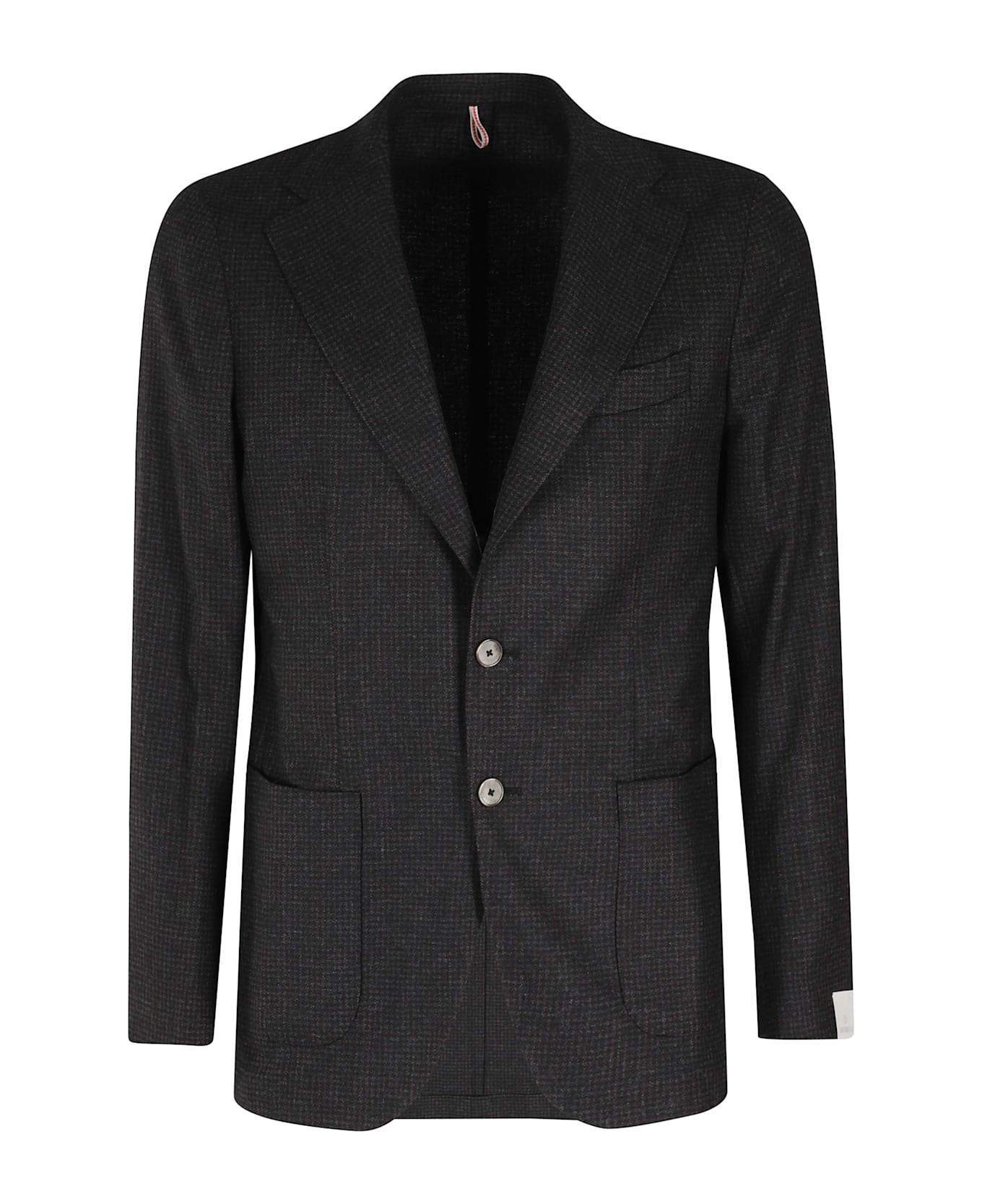 Pied De Poule Jacket - Santaniello - Brown color - Wool-blend fabric with houndstooth pattern - Lapel neckline - Long sleeves with buttons at hem - Side patch pockets - Single-breasted button closure