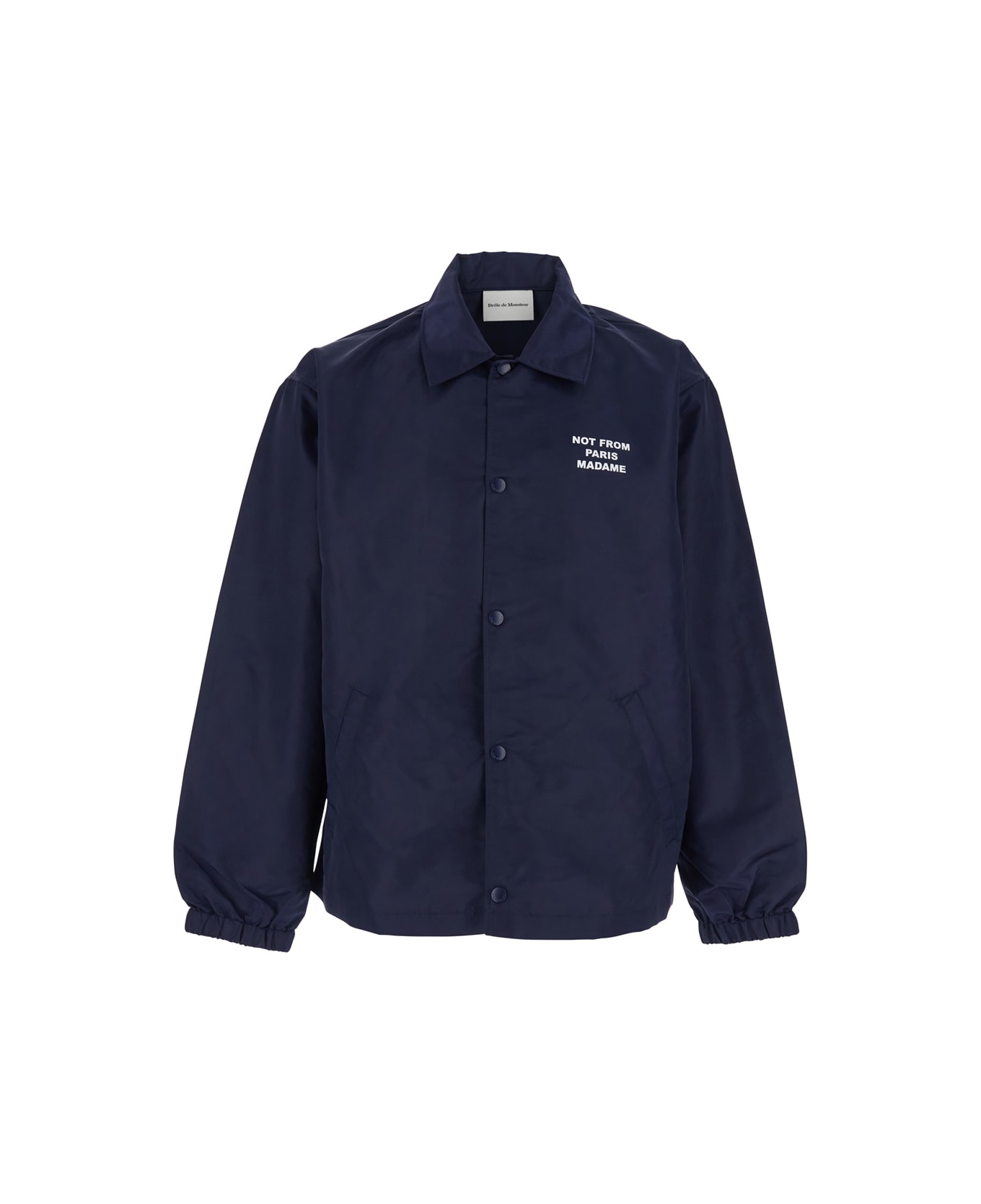 Drôle De Monsieur Blue Jacket With Slogan On Front And Back In Tech Fabric For Men