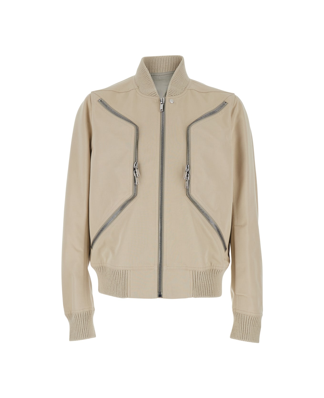 'heizer Flight' Beige Bomber Jacket With Two Front Zip Pockets In Cotton Blend Man