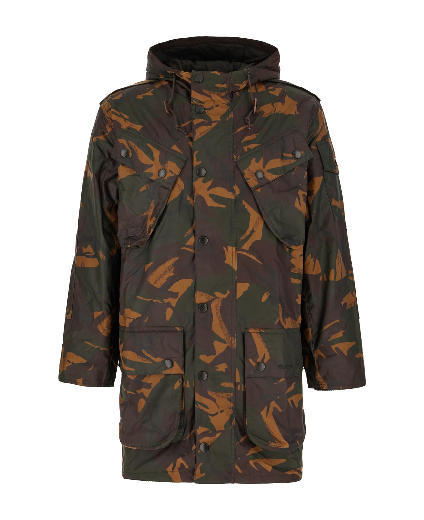Jacket realized in pure cotton characterized by mimetic print. -Drawstring hood -Epaulettes -Concealed zip closure and snap buttons -Four patch pockets at the front -Lined interior with a patch pocket