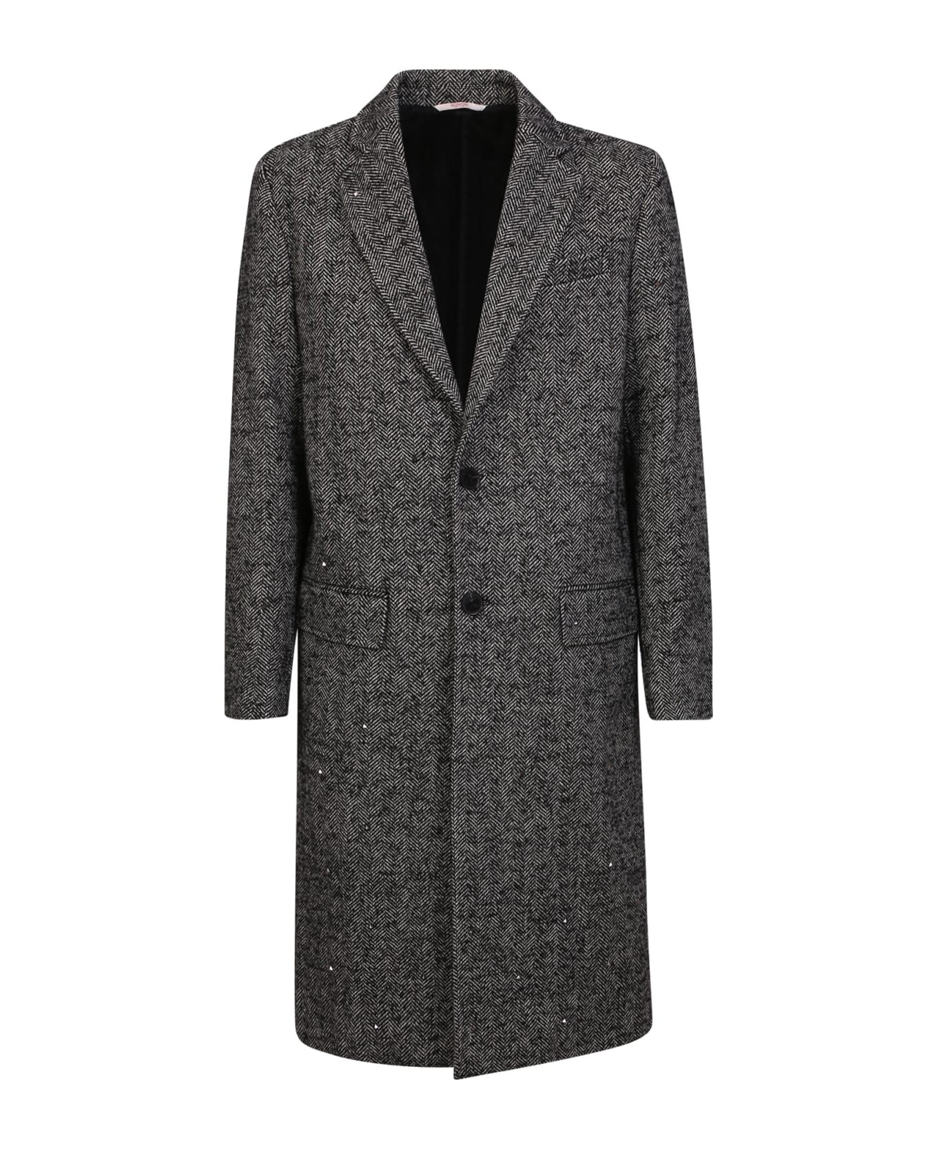 Notched collar. Single breasted. Front button fastening. Long sleeves. Front flap pockets. Harringbone detailing. Color: grey/ black