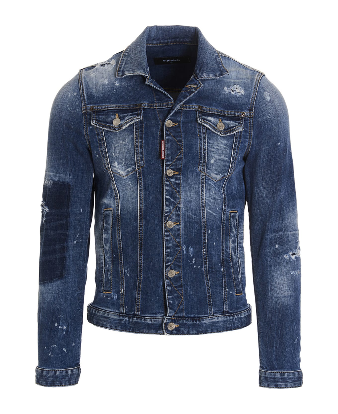'Classic Jean' cotton denim jacket with used-effect details, bleached splash details, button closure, pockets, long cuffed sleeves.