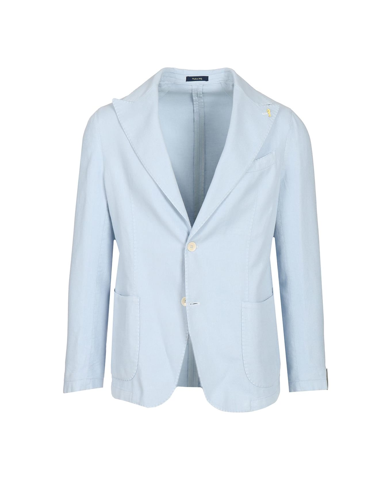 Unlined single breasted blazer with two horn buttons, double back vent and patch pockets