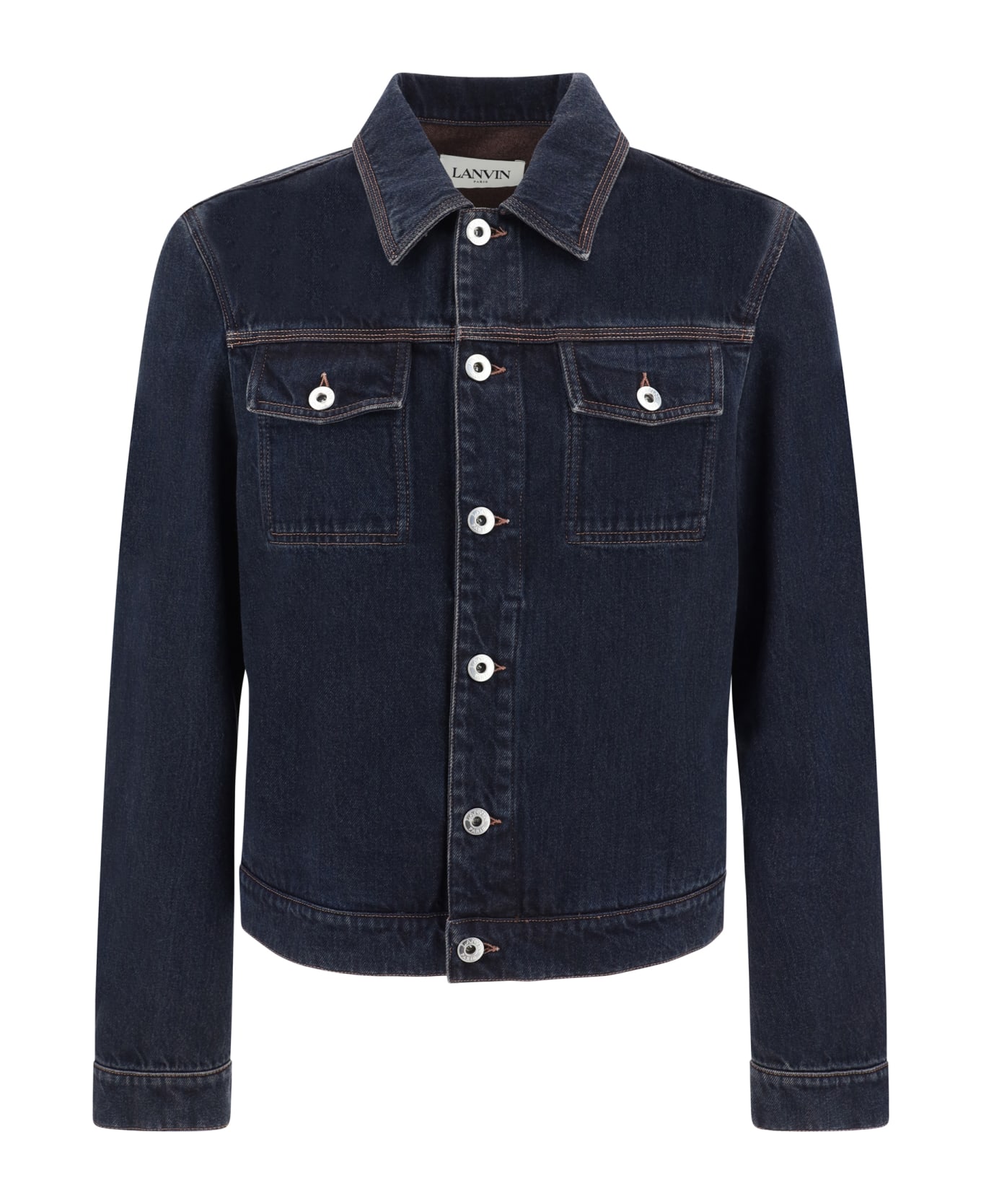 Cotton denim jacket by lanvin, classic collar, front button closure, monochrome design, two buttoned patch pockets on front, two side slit pockets. Composition: 100% % Cotton