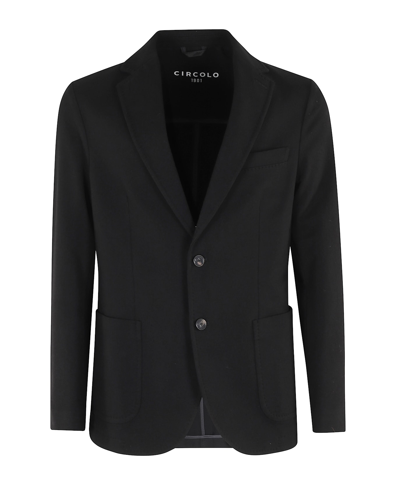 Sweatshirt jacket -Circolo 1901 -Black color -Center button closure -Revers -Long sleeves -Front pockets