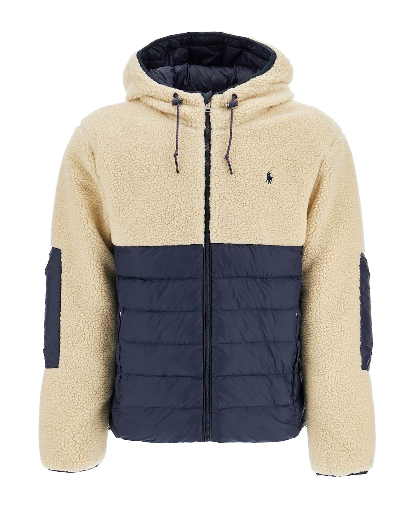 This lightweight hybrid jacket from Polo Ralph Lauren combines a soft fleece with quilted, recycled nylon taffeta and is padded with recycled synthetic fibers. The design features a zip closure, drawstring on the hood and hem, front pockets with zip closures, elasticized cuffs, and nylon patches on the elbows. Lined, with a short and regular fit. The model is 182 cm tall and wears size L.