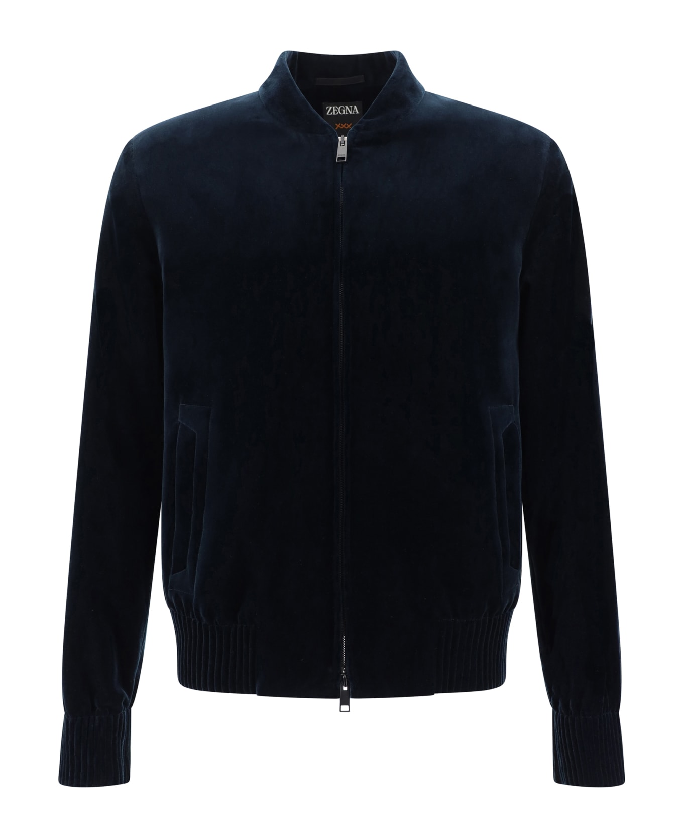 Cotton bomber jacket by zegna, double-slider front zipper closure, high crew neck, elasticized cuffs, velvet woven design, elasticized hem, two side welt pockets, regular fit Composition: 100% % Cotton