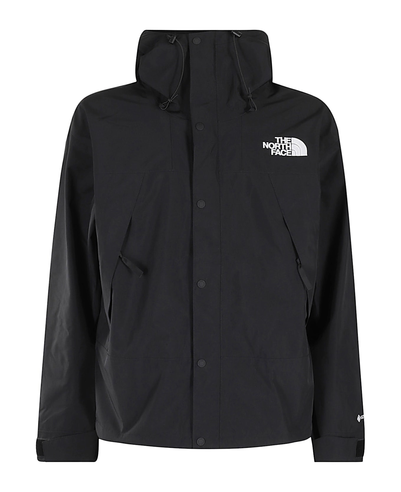 Gore-Tex Mountain jacket - The North Face - black color - made of gore-tex with heat-sealed seams - waterproof and windproof - adjustable hood - front snap button closure - zippered side pockets - printed logo on chest