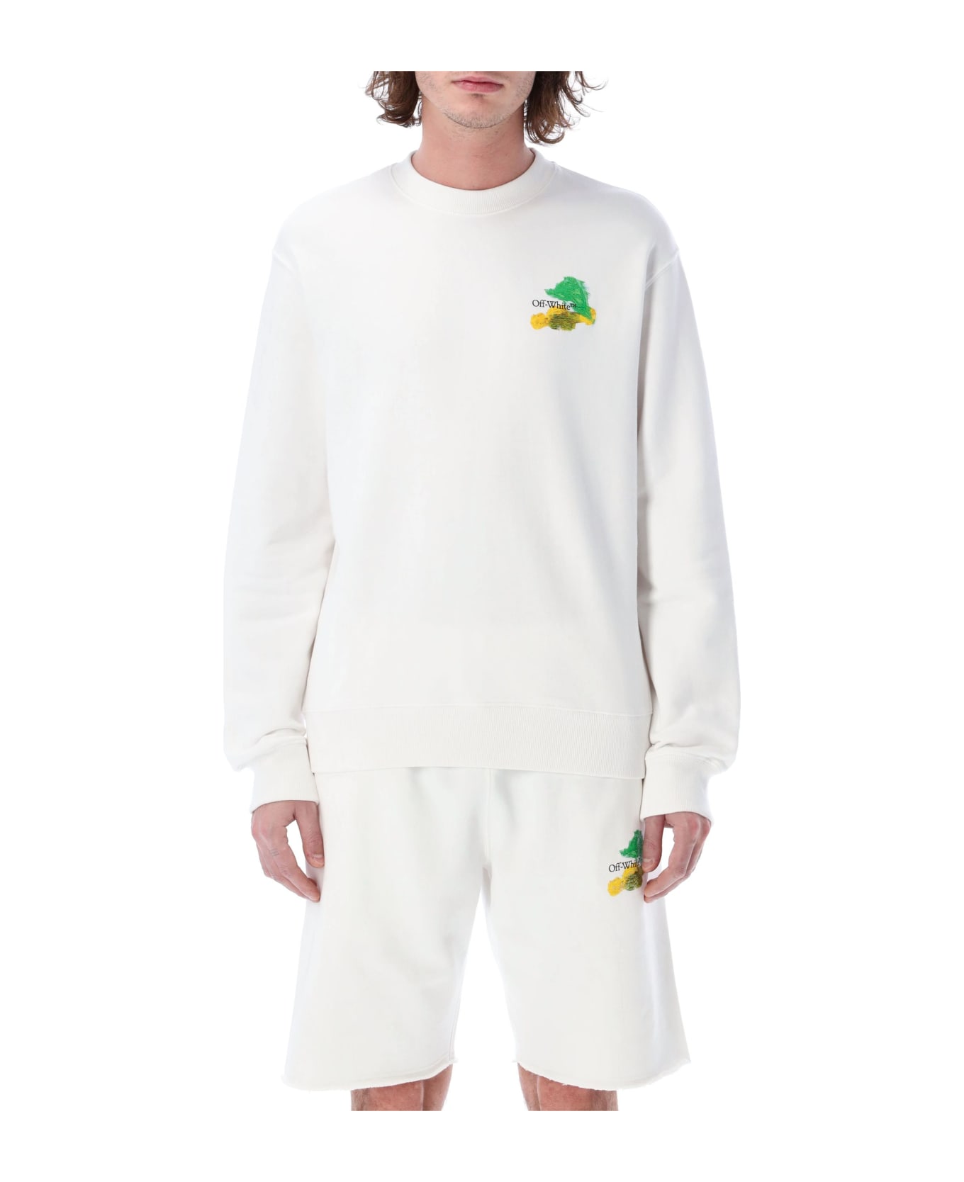 Cotton Brush Arrow Slim Sweatshirt By Off-white. Featuring: Crew Neck Long Sleeves Multicolor Off-white Logo Print At Chest Multicolor Brush Arrow Print At Back Rib Trims The Model Is 1,90m Tall And He's Wearing Size L