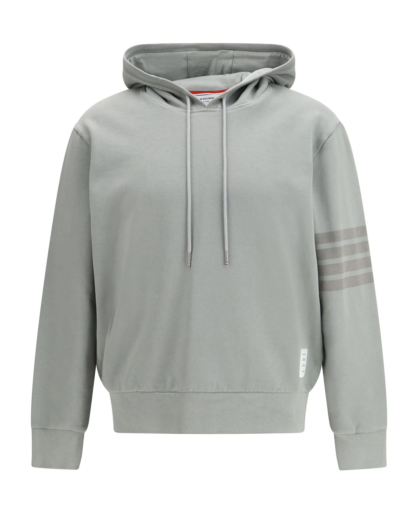 The cotton hoodie by thom browne is a casual-chic garment with an iconic and refined design. the drawstring hood offers an adjustable fit, while the ribbed hem and cuffs ensure a comfortable and secure fit. the iconic horizontal stripes on the left arm and the signature patch on the front add a distinctive and recognizable touch of the brand. a must-have for those looking for a sporty yet sophisticated look with a touch of luxury. Composition: 100% % Cotton