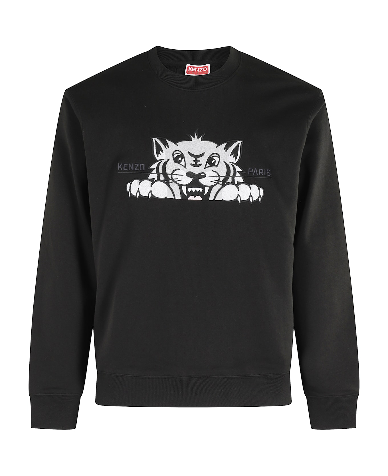 Sweatshirt - Kenzo - Black color - Happy tiger embroided pattern - Round neck - Long sleeves - Patch design on front