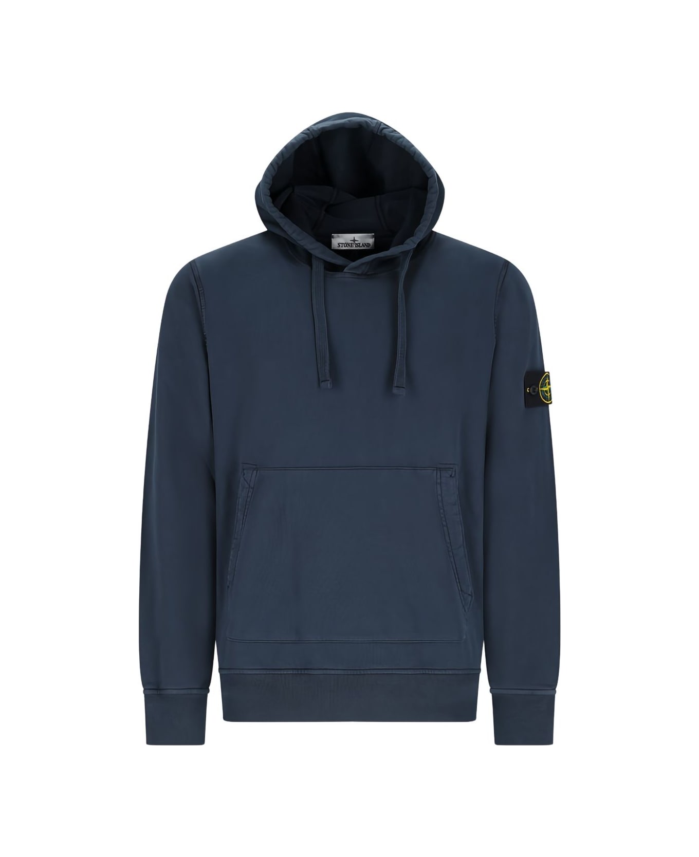 blue front pouch pocket logo patch drawstring hood ribbed hem Composition: 100% Cotton