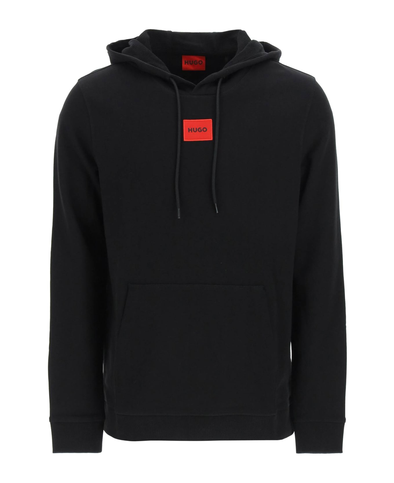 Made from mid-weight, loopback cotton fleece to a regular fit, this Hugo sweatshirt features a fabric logo label embroidered at the center chest. Designed with a drawstring hood and kangaroo pocket, it is finished with ribbed cuffs and hem. The model is 187 cm tall and wears a size L.