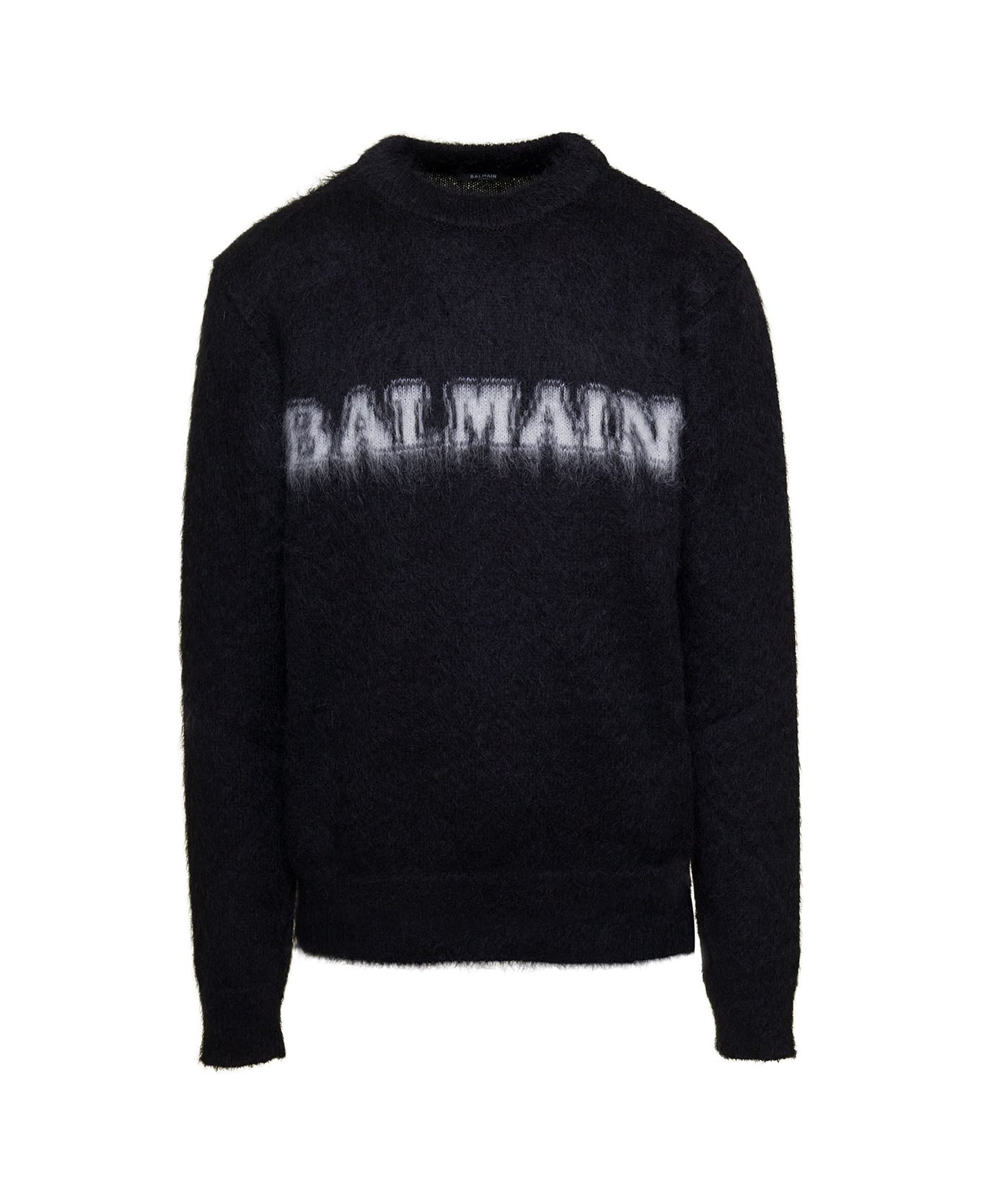 Black Crewneck Sweater With Maxi Logo Lettering On The Front And Brushed Effect In Wool Blend Man