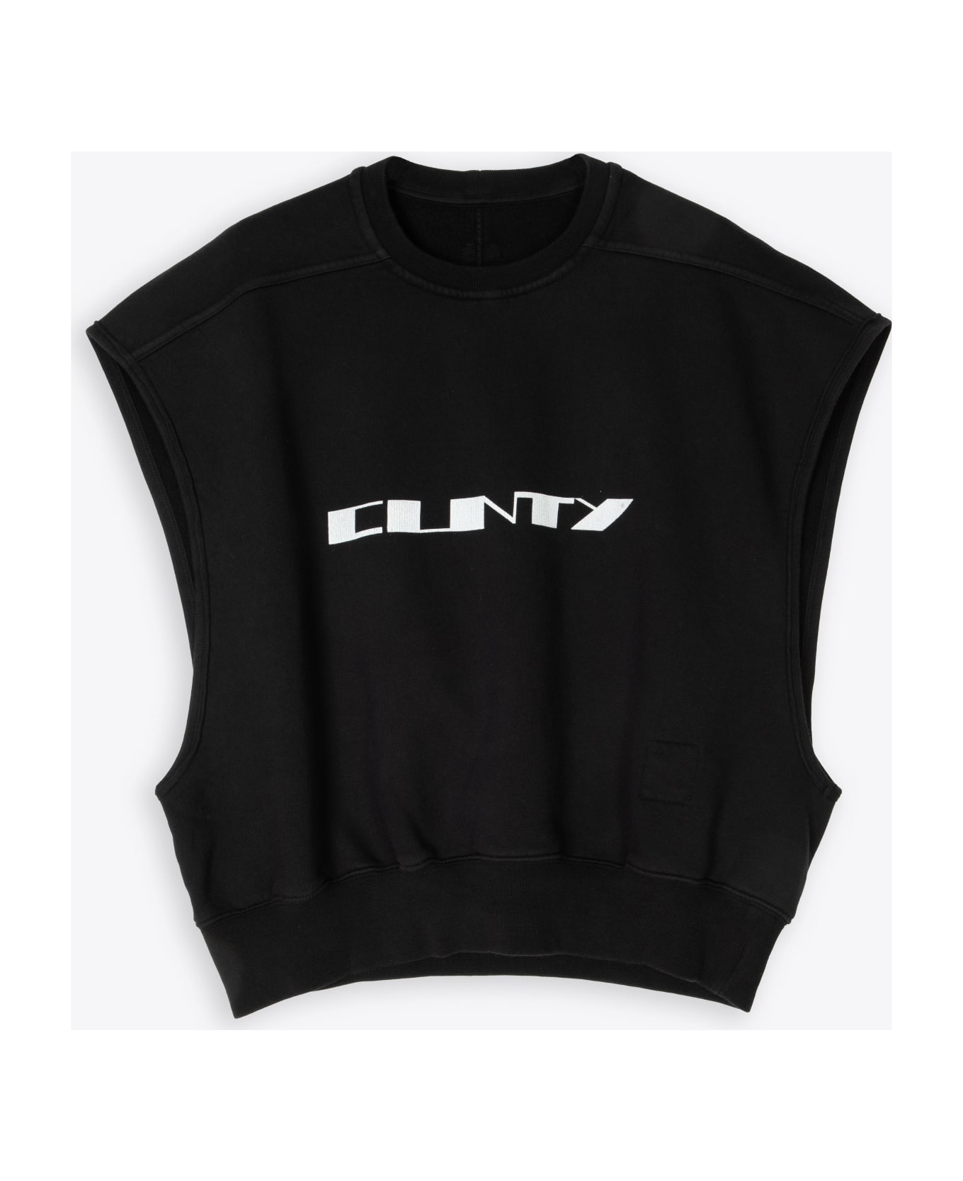 Black cotton sleeveless swetshirt with ribbed crewneck and bottom hem. Cunty front print. Cropped fit. Composition: 100% cotton. Made in Italy.
