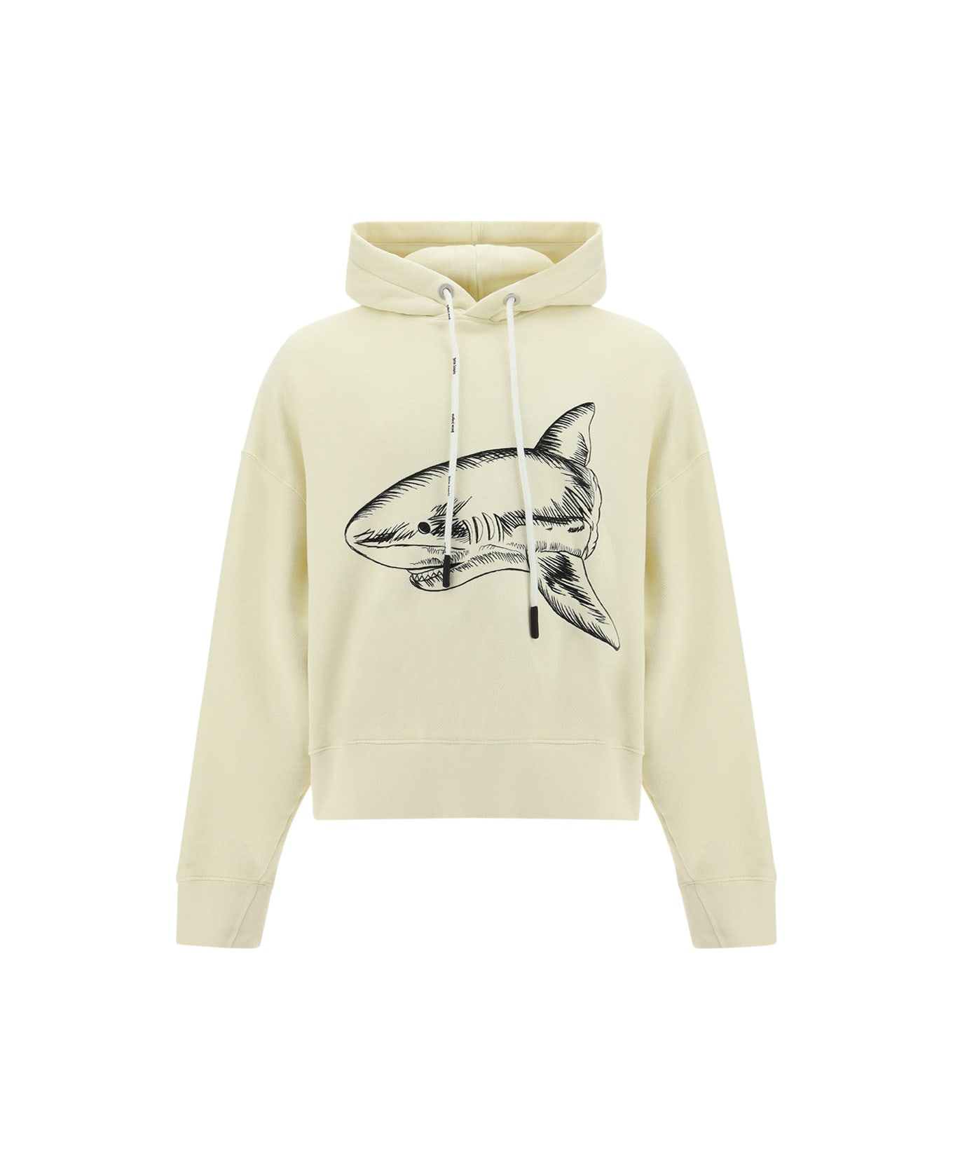 Cotton split shark hoodie by palm angels, hood with adjustable drawstring, ribbed cuffs, ribbed hem, iconic brand monogram printed in contrast on back, shark graphic printed on front and back, regular fit.