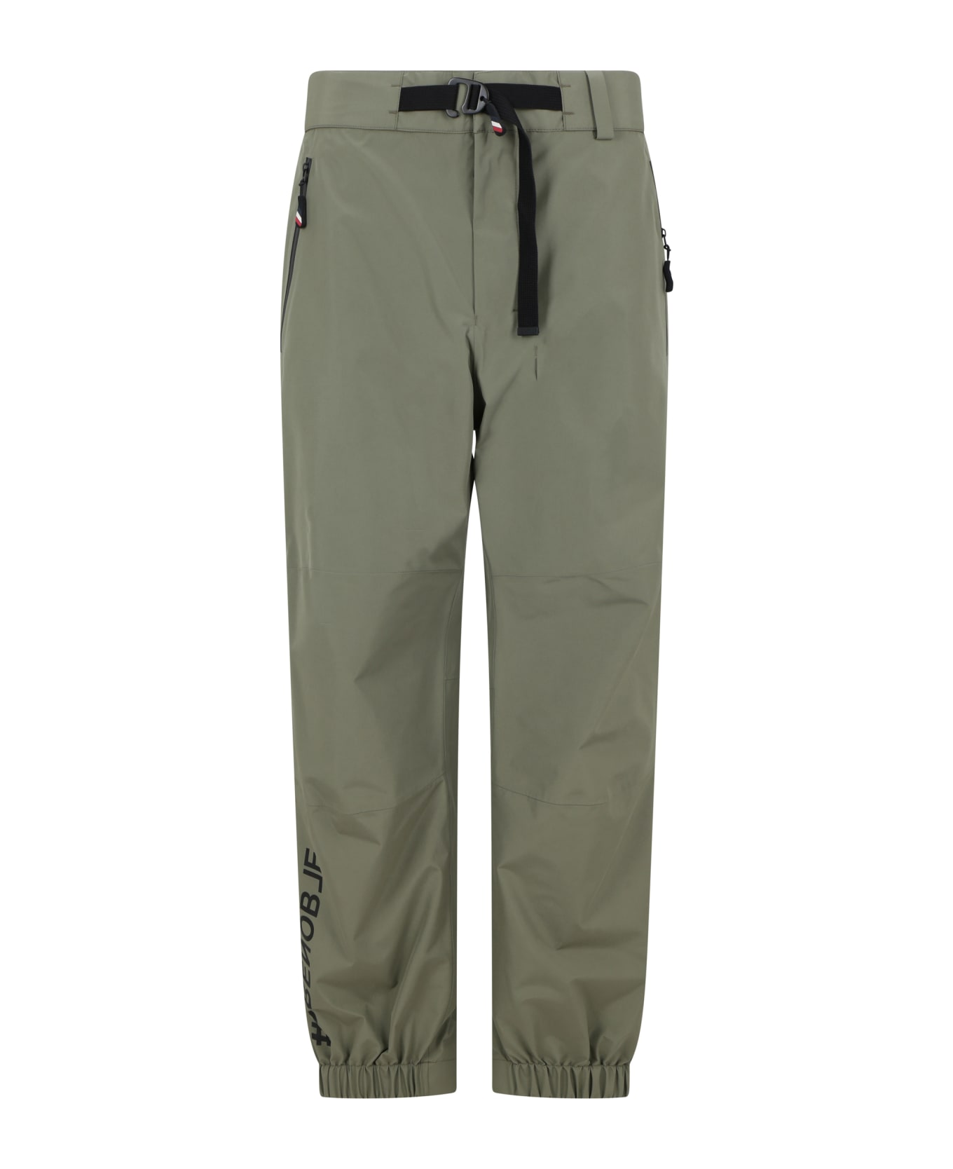 Sport pants by moncler grenoble, front hook and zip fastening, model with adjustable belt, two side welt pockets, elasticated hems, contrasting iconic brand logo on front and back. Composition: 100% % Polyester
