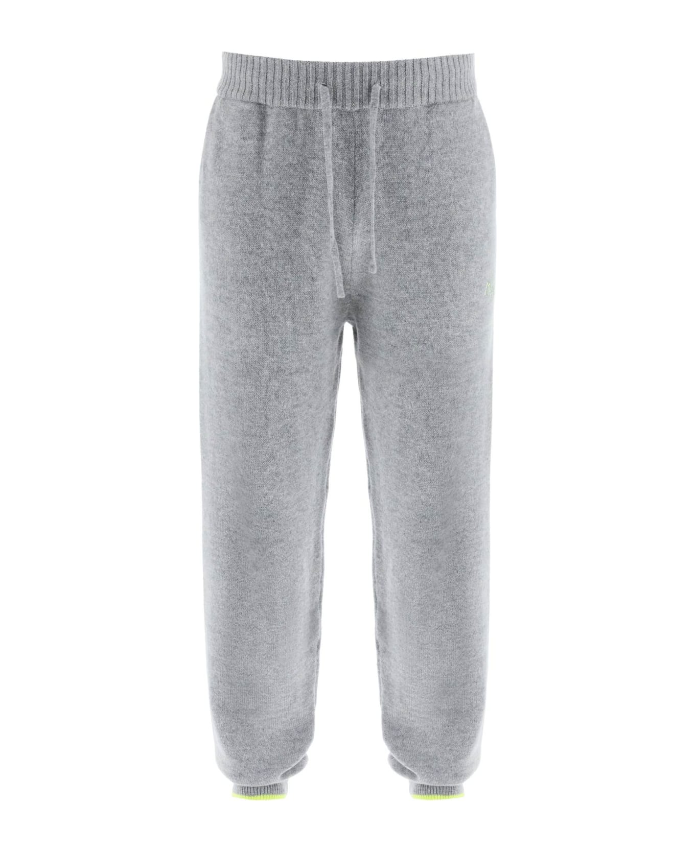 MSGM loose-fit pants in melange wool and cashmere yarn, with contrasting front logo embroidery. Elasticated drawstring waistband, slash pockets and ribbed cuffs with contrasting detail. One rear welt pocket. The model is 187 cm tall and wears a size L.