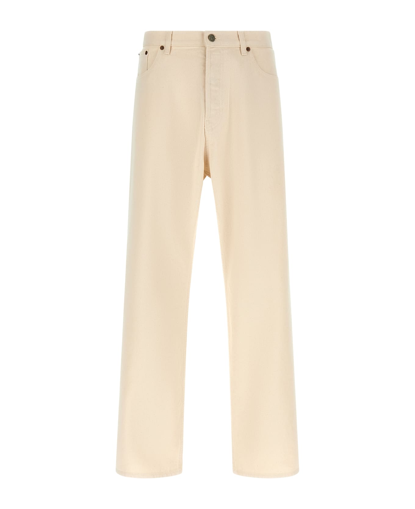 Garment-dyed Solid denim jeans with wide and straight leg, ironed pleat, front button closure, five pockets, VGold antiqued metal detail on the back pocket. Composition: 100% cotton