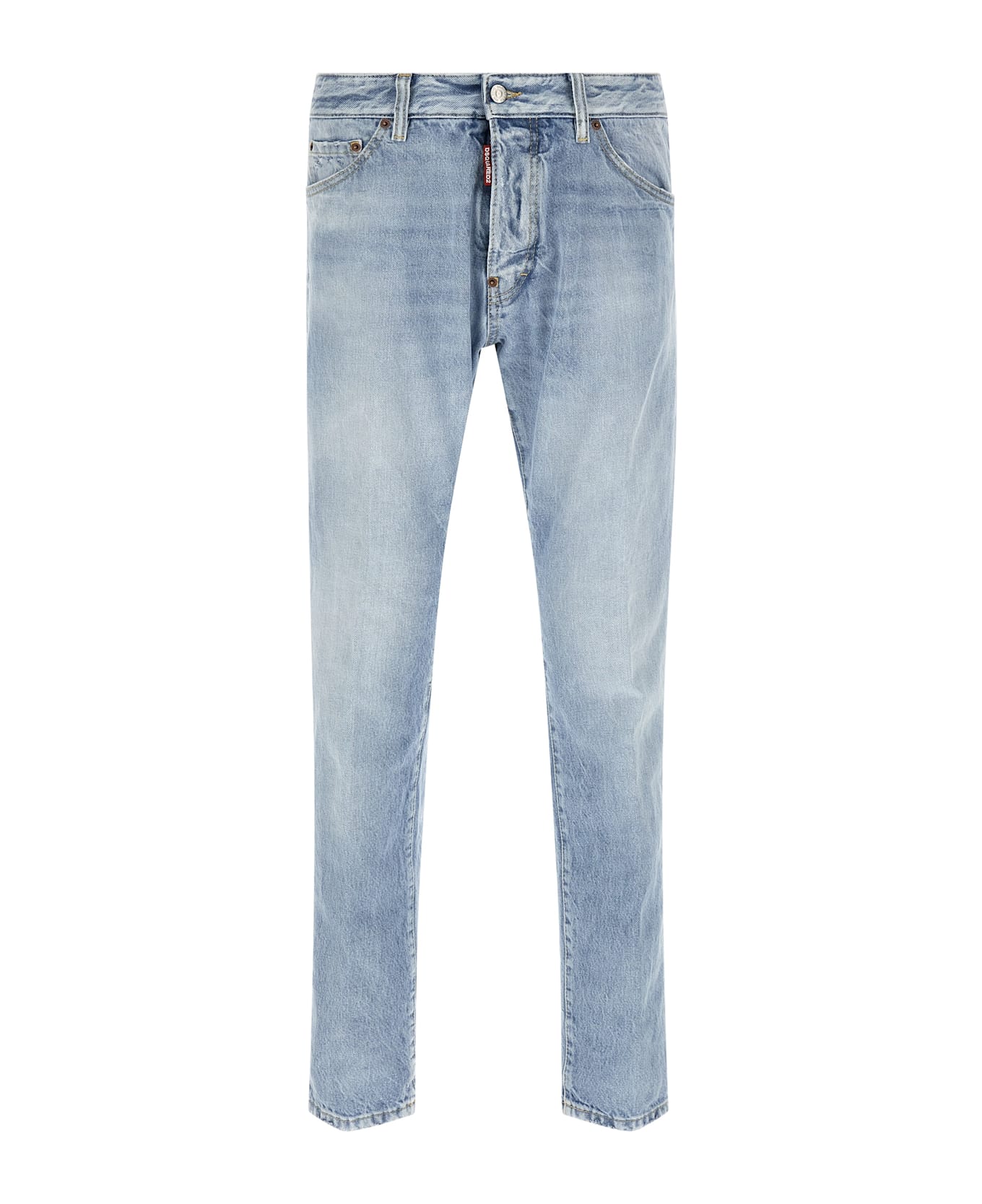 Teddy' used-effect cotton denim jeans with light rips, contrast stitching, low waist, front button closure, five pockets, and leather logo label at the back. Composition: 100% cotton