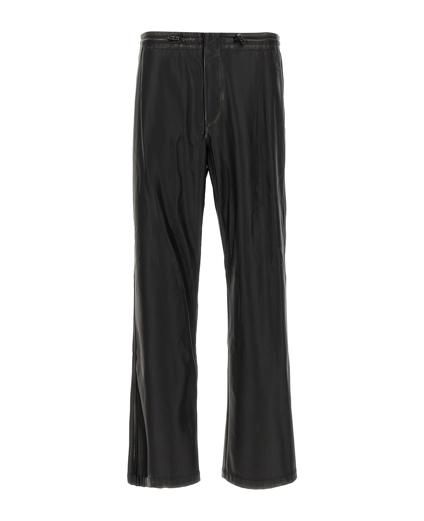 'P-Rivers' trousers in hand-brushed leather-effect technical fabric to create a naturally lived effect on the seams, zip and front button closure, adjustable drawstring elastic at the waist, pockets, wide and straight leg. Composition: 100% polyester