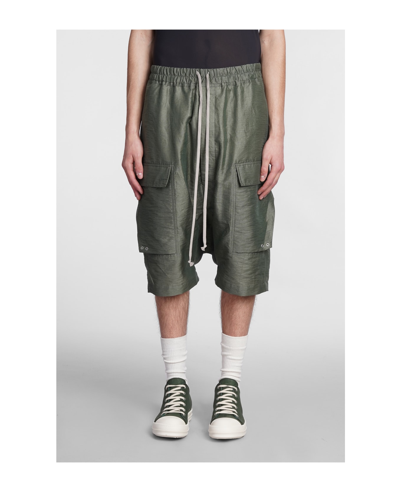 Cargo pods Shorts in green linen, elastic waist, coulisse closure, cargo pockets, four pockets, 84% linen 16% nylon, Made in Italy, Model is 183 cm and wears 48