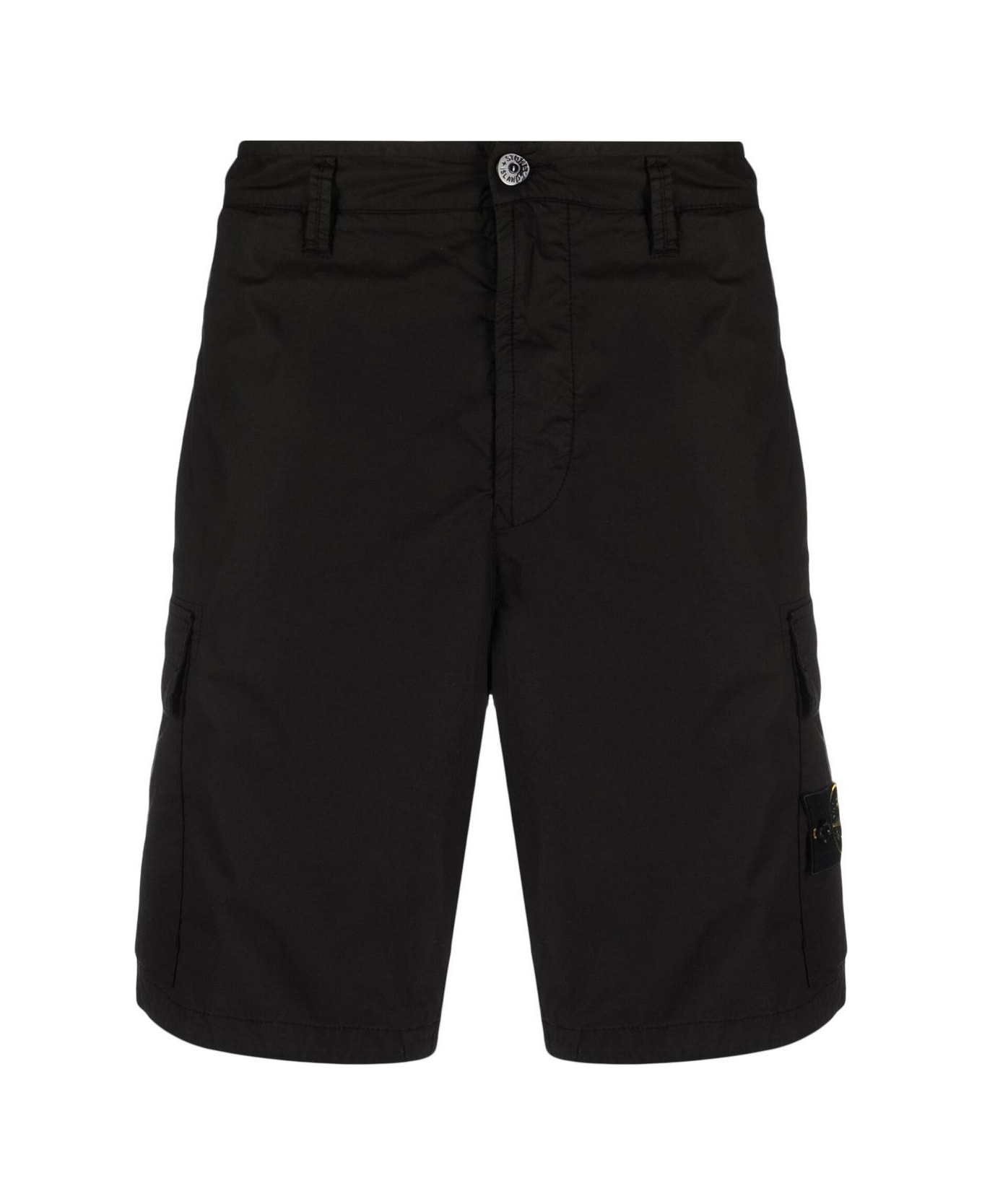 black stretch-cotton signature Compass motif belt loops front button and zip fastening two side cargo pockets rear welt pocket Composition: 97% Cotone, 3% Elastan
