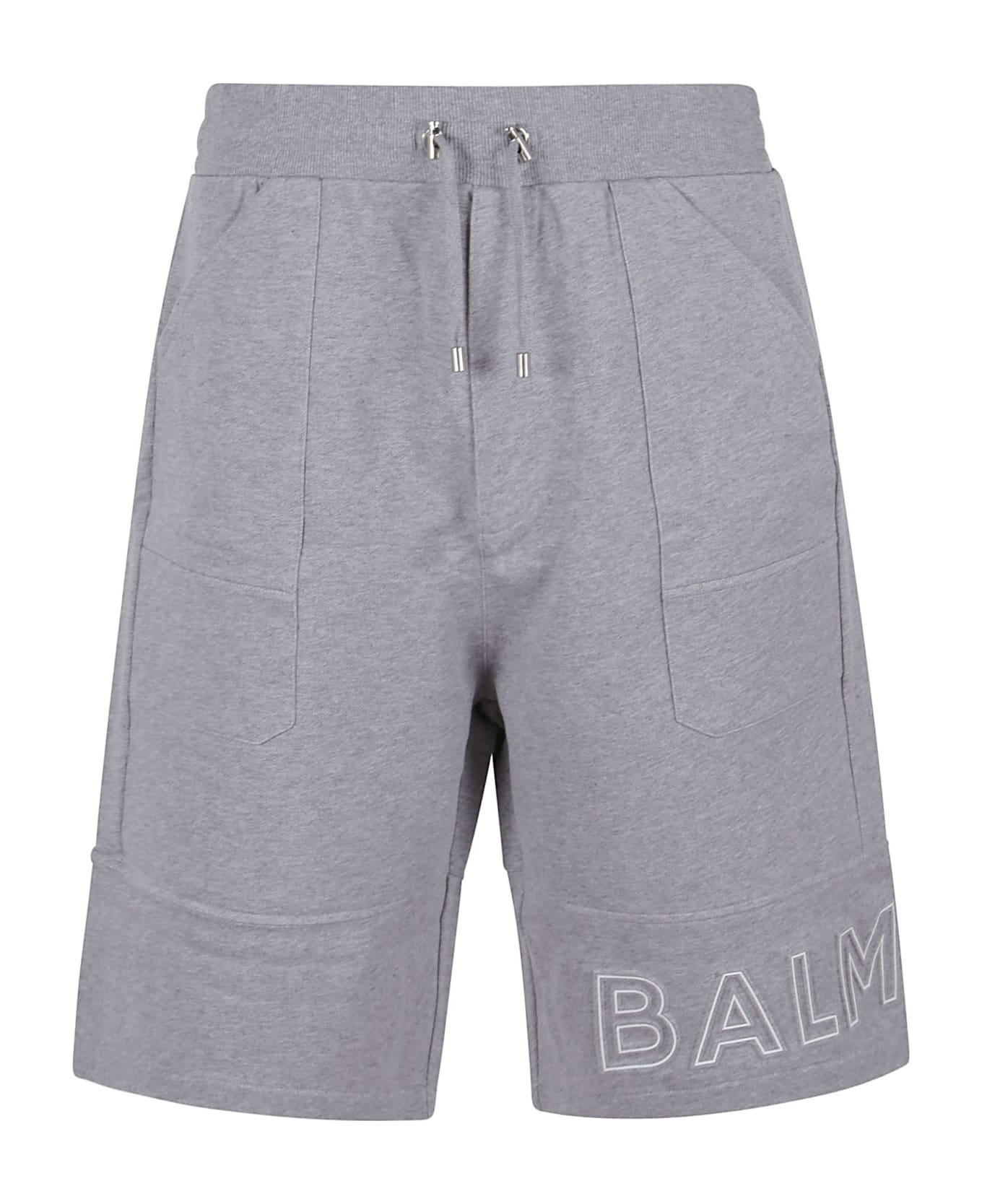 Bermuda shorts in eco-sustainable cotton BY BALMAIN. Elastic waist with drawstring; four pockets. Regular fit design. Embossed Balmain logo detail.