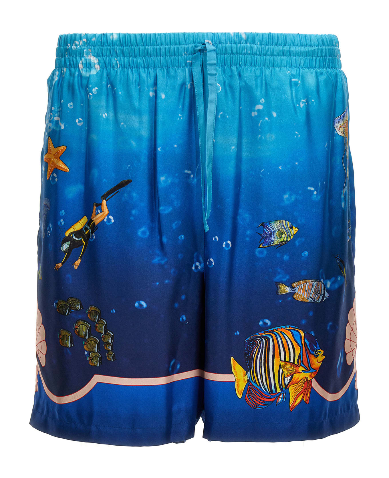 Silk bermuda shorts with all-over 'Fond Multiestring' print, an elastic waistband and drawstring at the waist, pockets. Composition: 100% silk