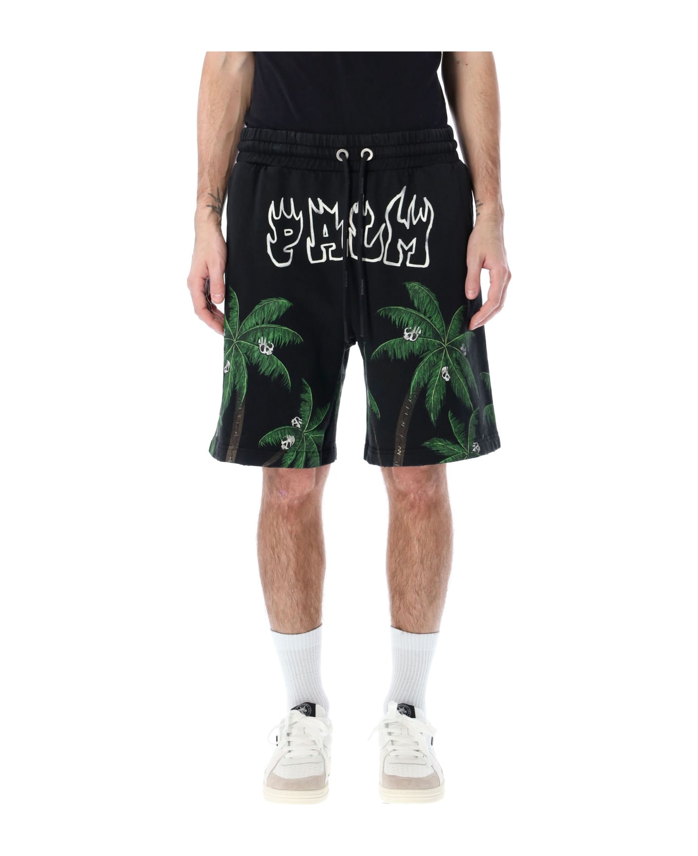 Cotton Palms&skull Vint Sweatshorts By Palm Angels. Featuring: