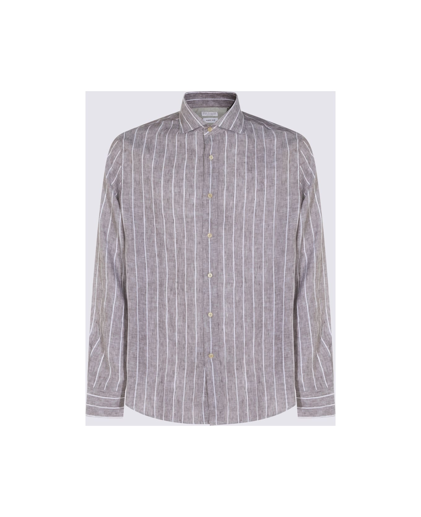Brown linen shirt from Brunello Cucinelli featuring shirt collar, buttons fastening, long sleeves, vertical stripes pattern and regular vestibility. Composition: _, 100% Linen