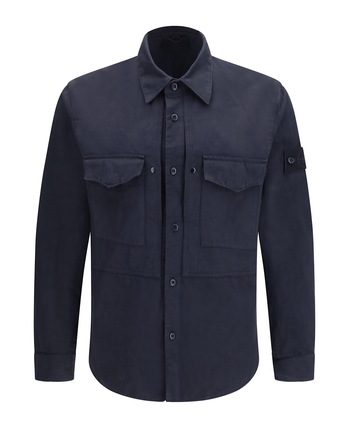 The garment-dyed cotton and linen overshirt by stone island delivers a functional and contemporary take on casual dressing. crafted from a cotton and linen blend, it features a lightweight yet structured construction designed for versatile everyday wear. patch chest pockets, a button-front closure and buttoned cuffs underline its utilitarian character. the garment-dyed finish adds depth and a lived-in look to the fabric, while the iconic stone island sleeve patch provides a distinctive and recognizable signature.