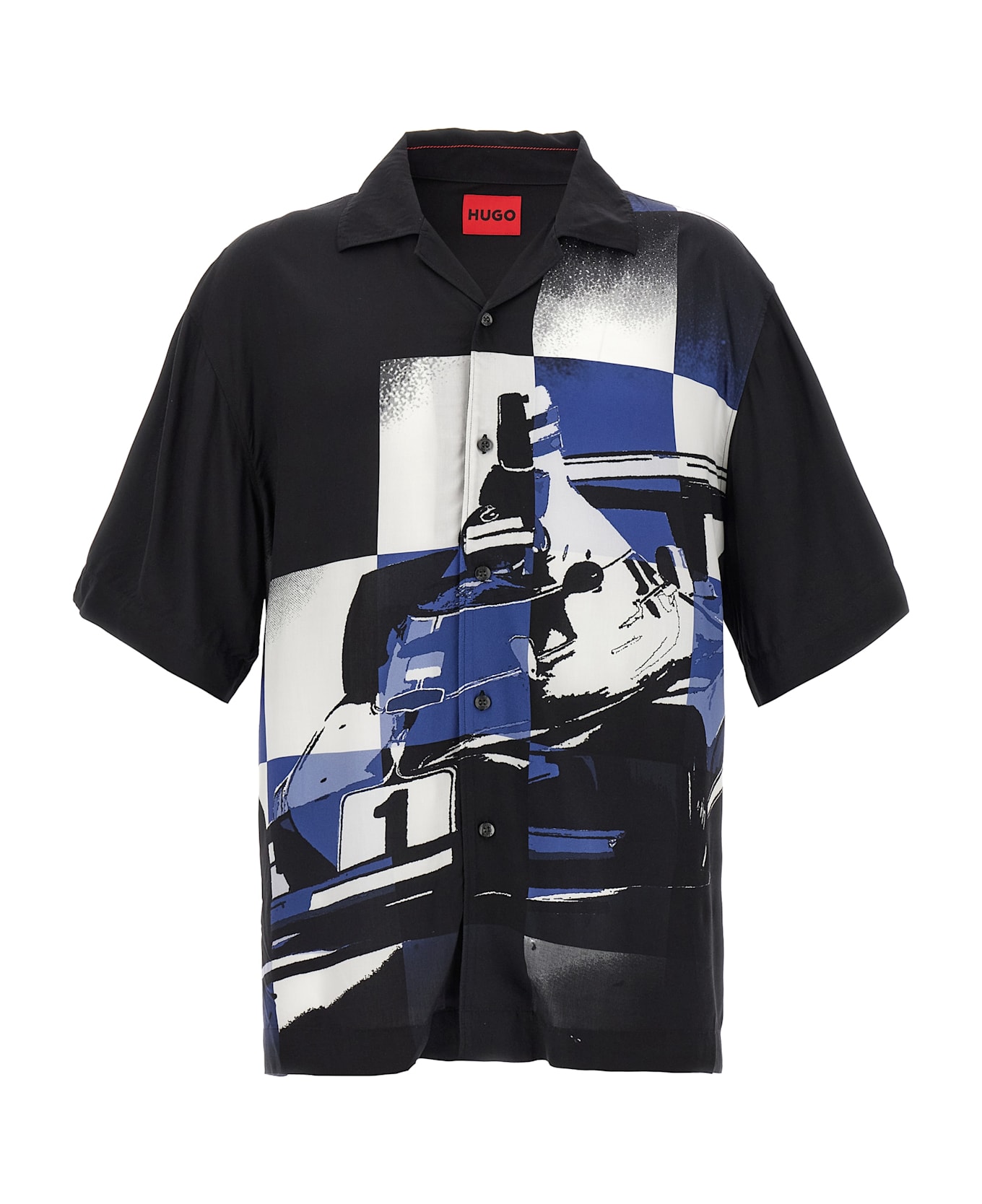 'Espino' viscose shirt with front print, bowling model, short sleeves with dropped shoulders, front button closure.