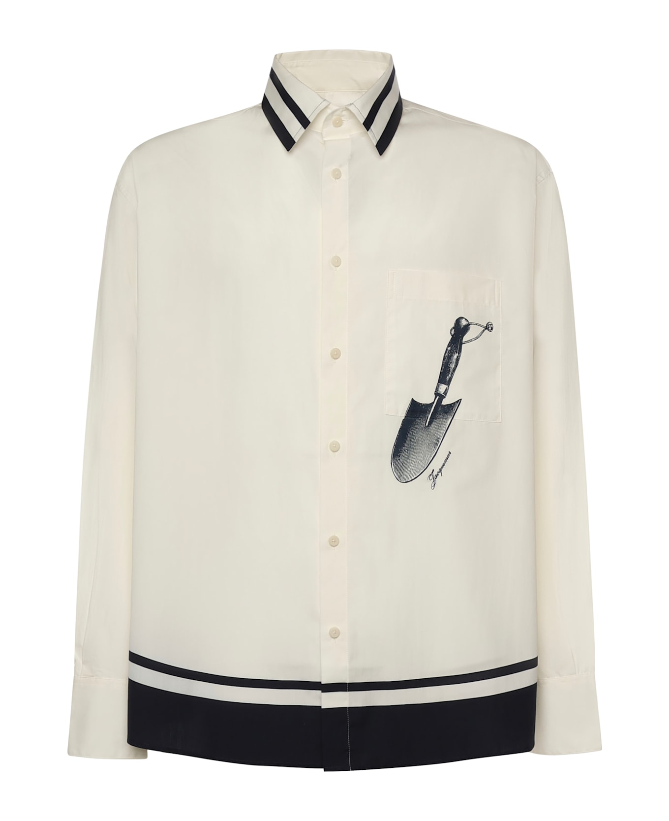 - Made of pure cotton - Front button closure - Long sleeves - Pointed collar - Buttoned cuffs - Size shown is 46 - Designer color: Blue Shovel Placement