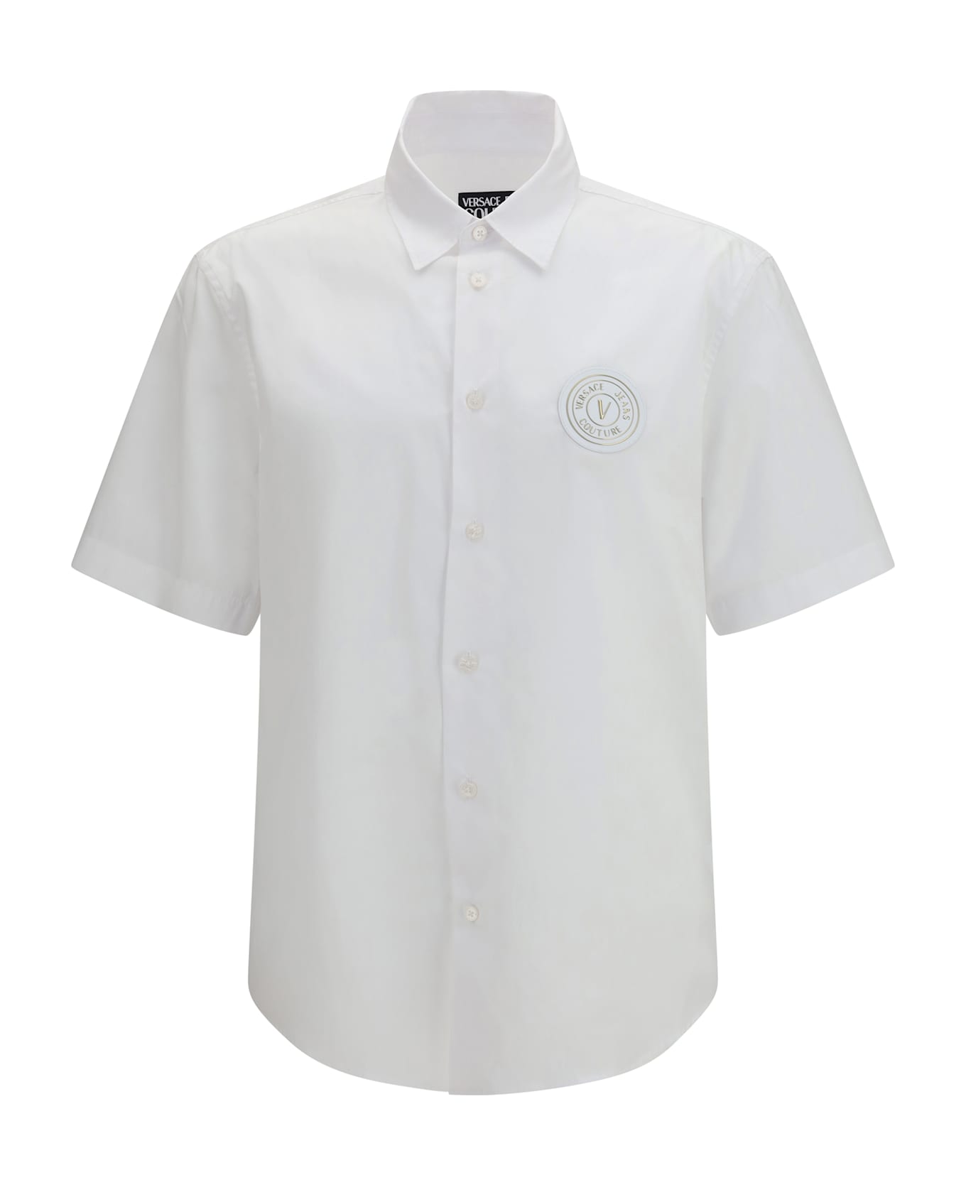 The logo-emblem shirt by versace jeans couture delivers a contemporary aesthetic with distinctive character. the emblem detail enhances the design with an iconic and recognisable touch. featuring a front button closure and short sleeves, it balances casual elegance with urban attitude. a versatile piece, perfect for statement summer styling. Composition: 100% % Cotton