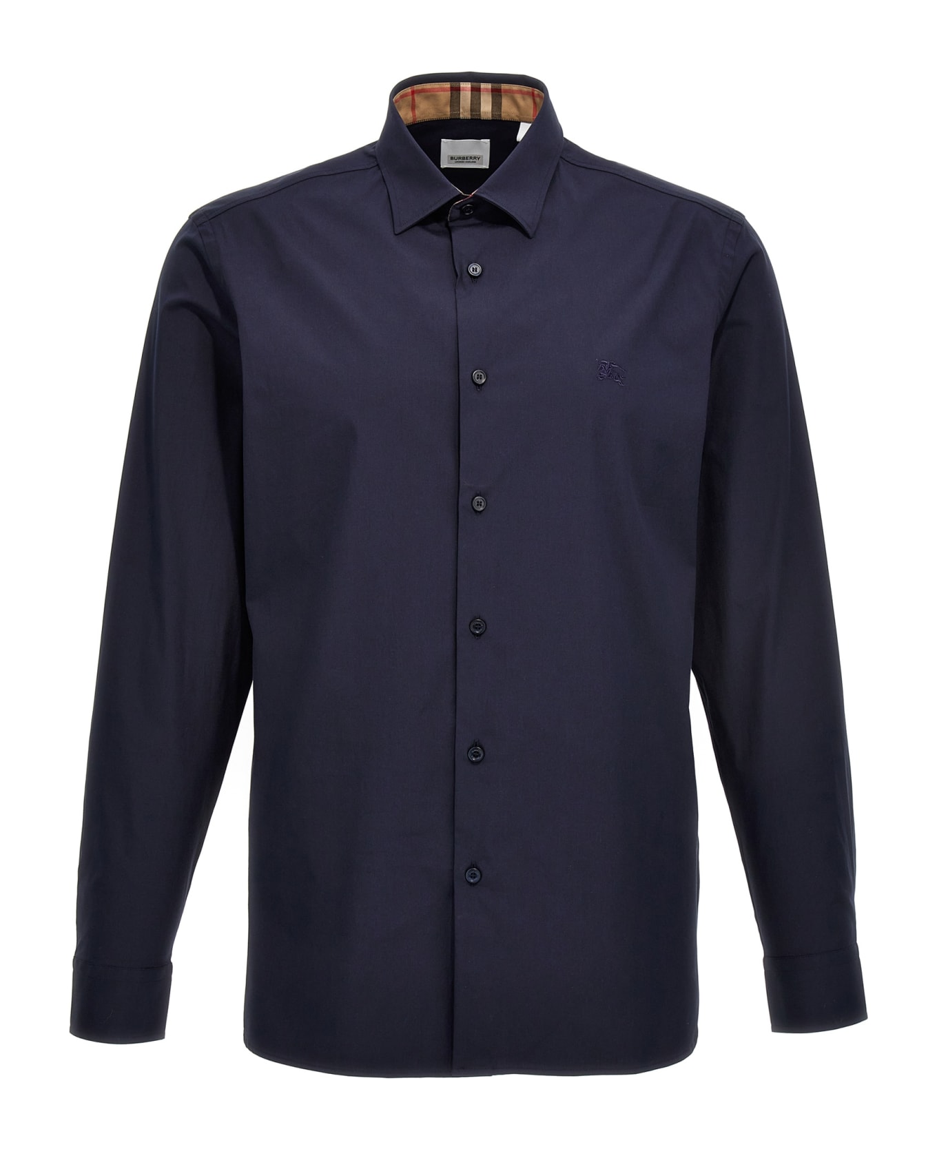 Sherfield' stretch cotton poplin shirt with check fabric inner collar detail and a front logo embroidery. Composition: 96% cotton 4% elastane