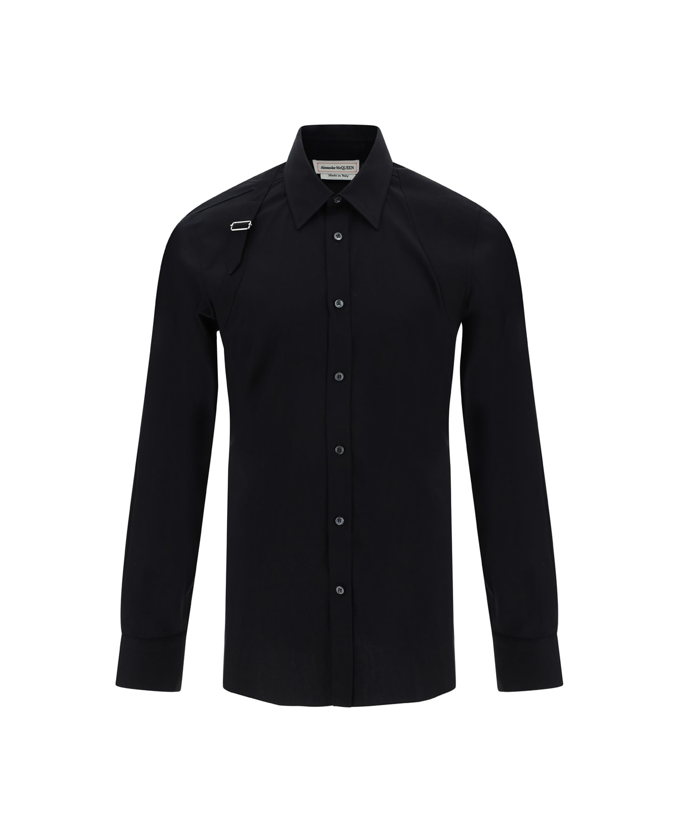 Cotton shirt by alexander mcqueen, front button fastening, classic collar, embroidered martingale detail on right shoulder, adjustable cuffs, slim fit. Composition: 97% % Cotton, 3% % Elastane