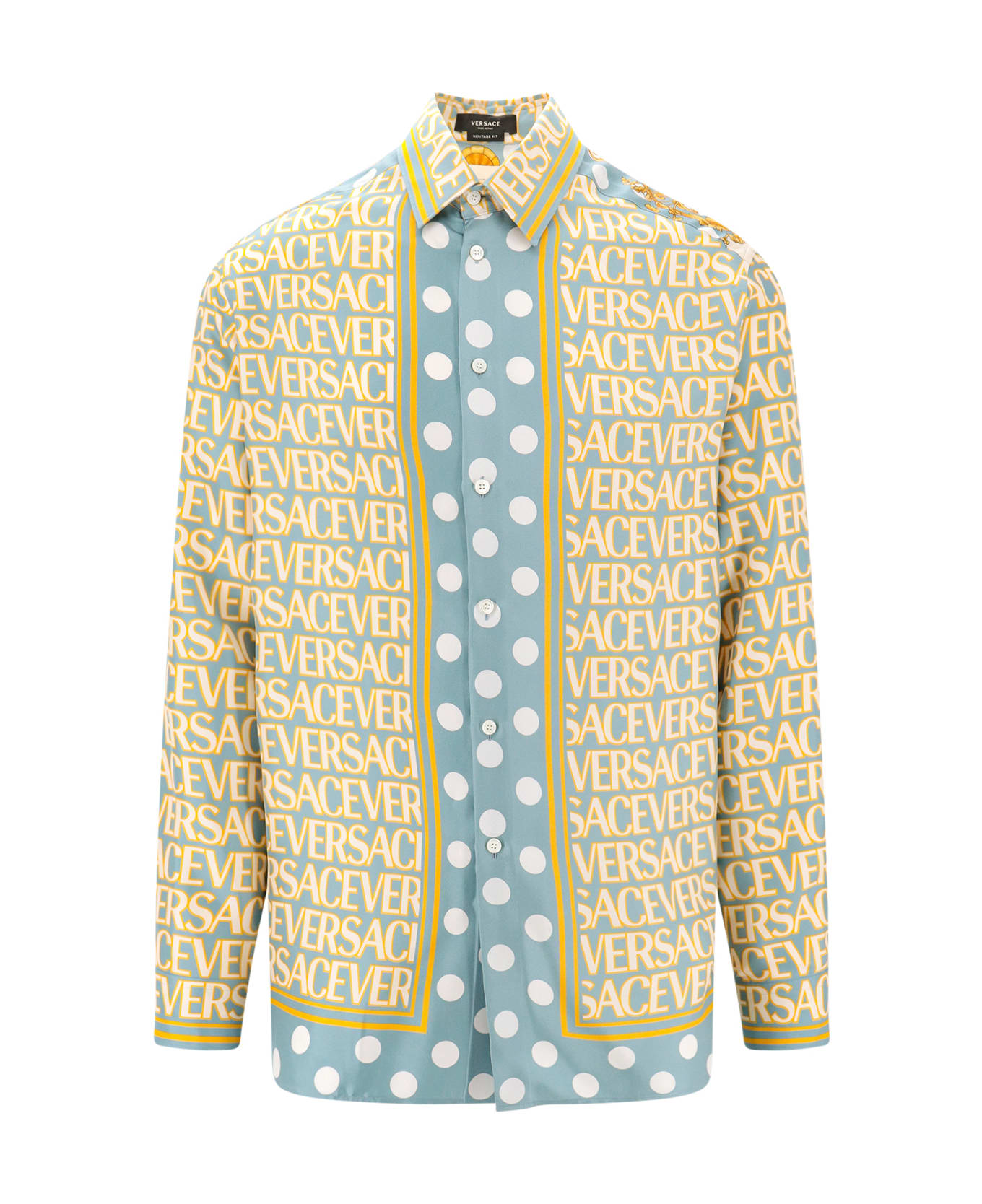 - Closure With Buttons And Long Sleeves - Versace Allover Polka Dot Print On The Front - Seashell Baroque Polka Dot Print On The Back - Made In Italy - 100% Silk
