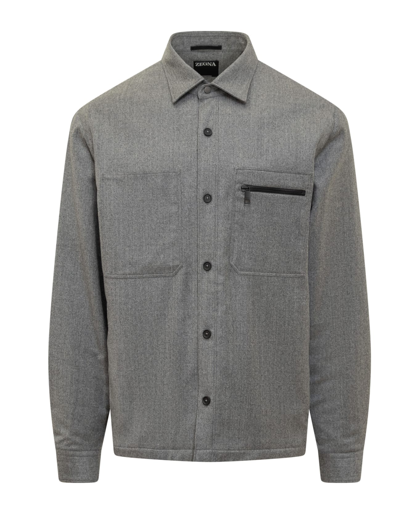 Long sleeve shirt. Pointed collar. Button closure. Snap button on collar and cuffs. Over fit. Side welt pockets. Color grey. Composition: Outside:, 100% Wool Lining:, 100% Polyester