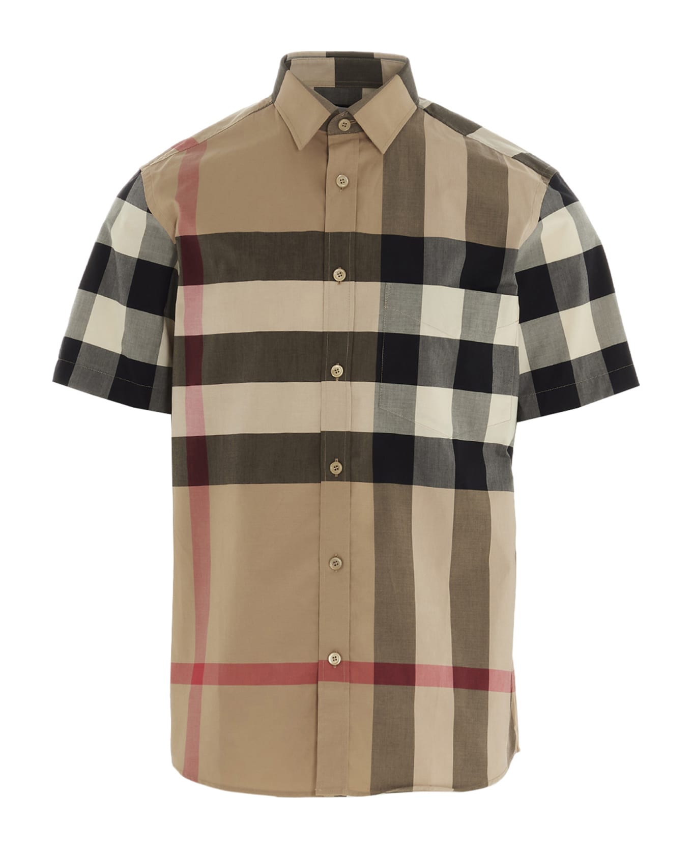 'Somerton' poplin cotton shirt featuring an all over check print, a button closure, and short sleeves. Composition: 95% cotton 5% elastane