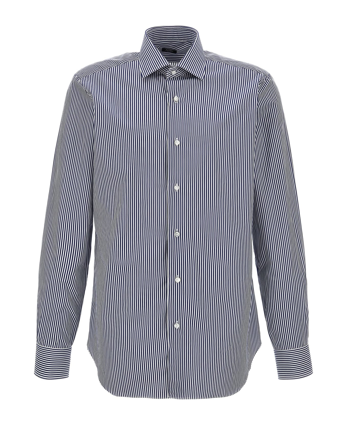 Striped cotton shirt with button closure, long cuffed sleeves.
