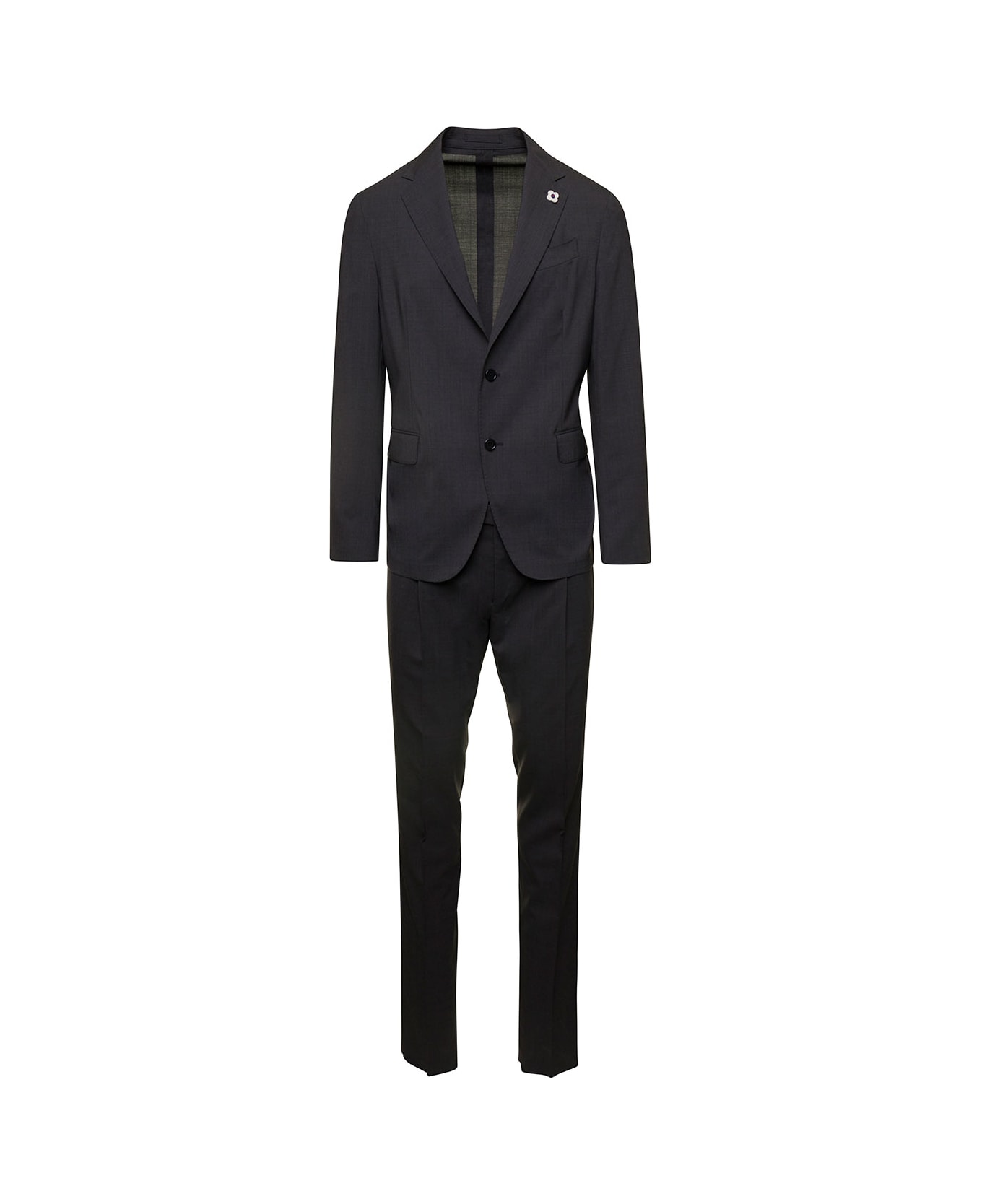 Grey Single-breasted Suit With Notched Revers In Wool Blend Man