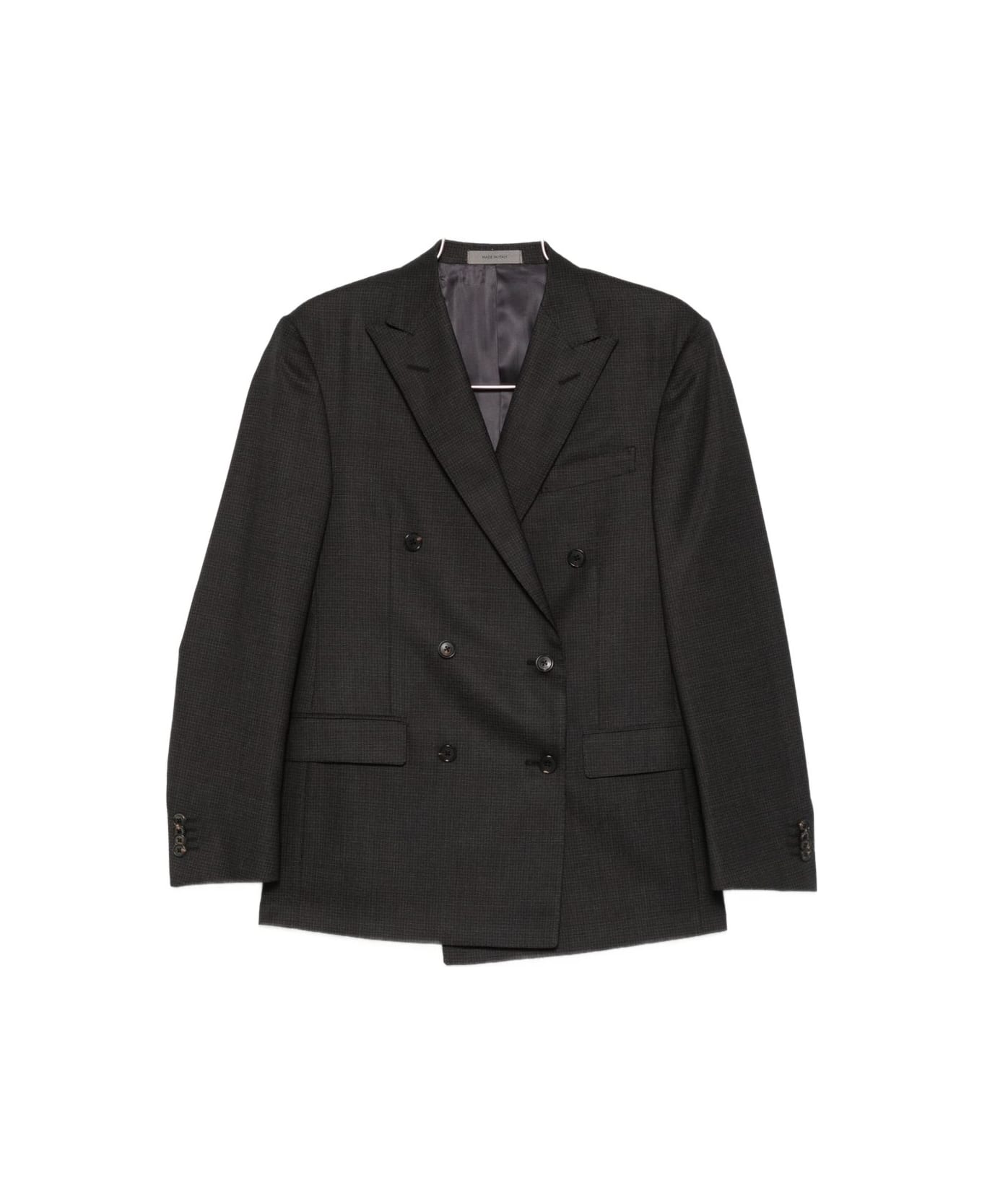 black double-breasted button fastening notched lapels flap pockets long sleeves