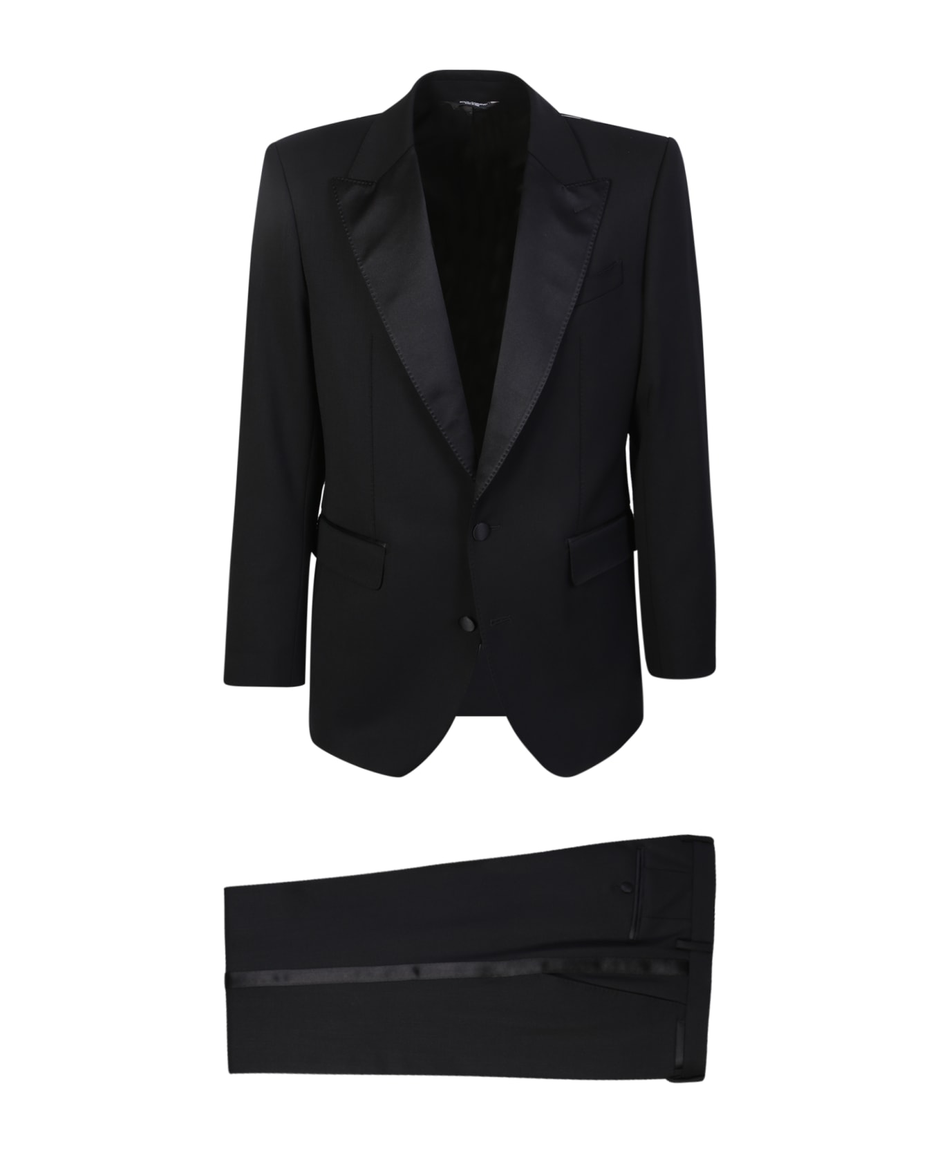 Peak lapels. Long sleeves. Chest welt pocket. Front flap pockets. Front button fastening. Regular waist. Two rear welt pockets. Tailored cut. V-neck. Sleeveless. Front button fastening. Two front welt pockets. Color: black