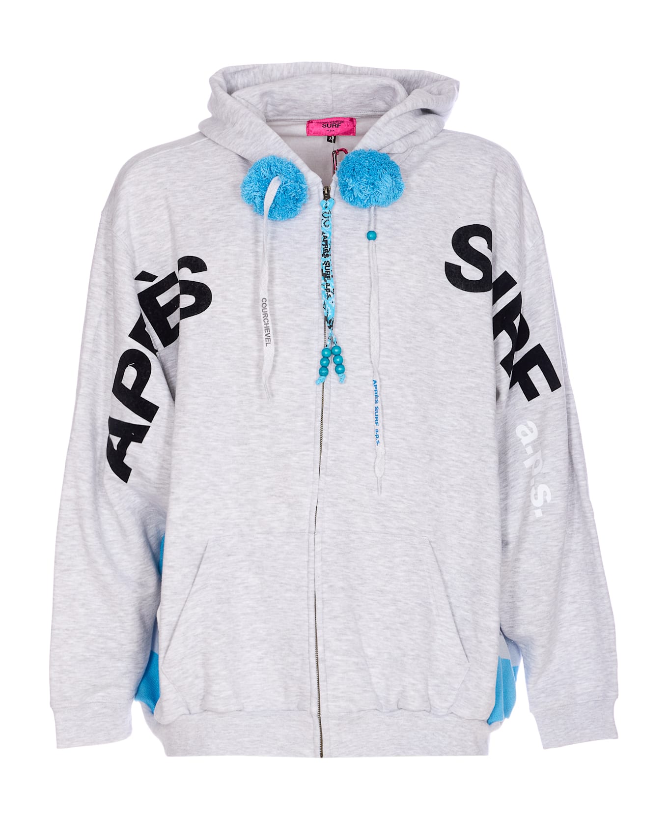 Apres Surf grey Nils zip hoodie, long sleeves, pockets, hood detail, coulisse with pom pon details, print logo on the front and on the back, hood detail with logo Composition: 80% Cotton, 20% Polyester