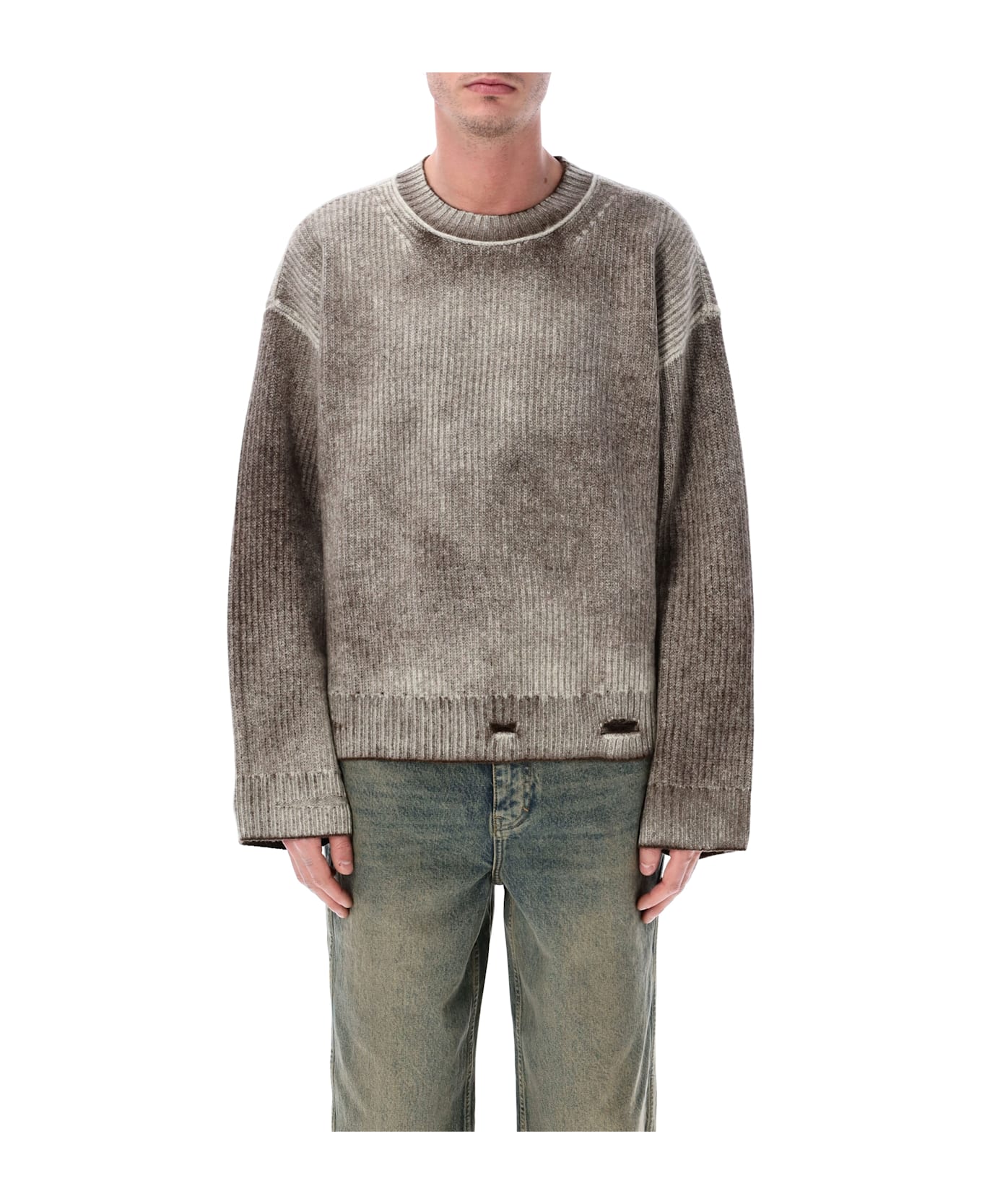 The Represent Reversible Fade Out Sweater Is Crafted From Soft Rib-knit Wool With A Worn, Lived-in Aesthetic. Designed To Be Fully Reversible, It Features Fade-out Printing, Distressed Cuffs And Hem, And Removable Labels For A Clean Look On Either Side. Fully Linked Seams And Ribbed Collar, Hem, And Cuffs Ensure Structure And Comfort, Making It A Versatile Statement Knit For Everyday Wear. Rib Knit Body