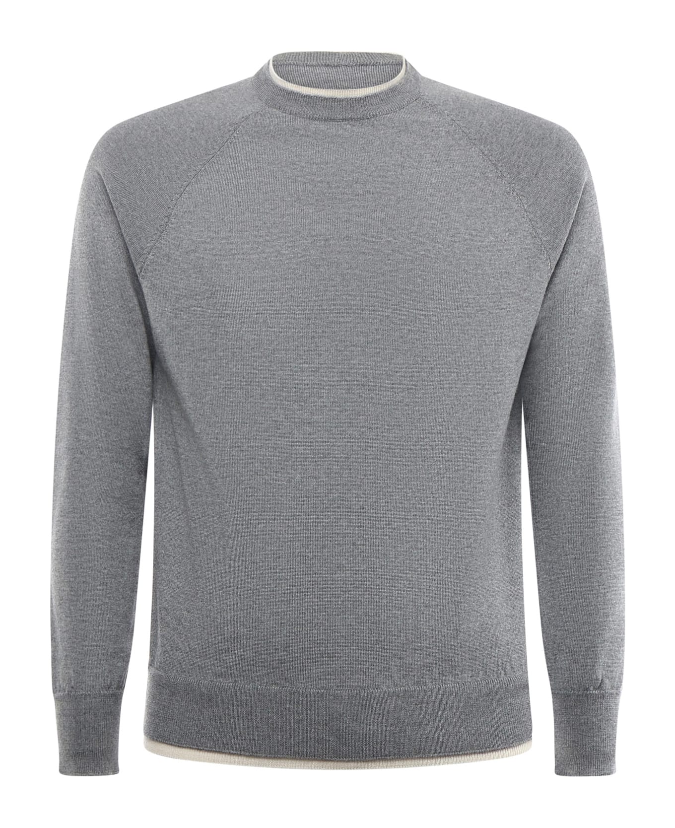 - Made of virgin wool - Crew neck - Long sleeves - Finished with ribbed edges - Made in Italy - Size shown in photo is S - Designer color: Light gray, Sand and White